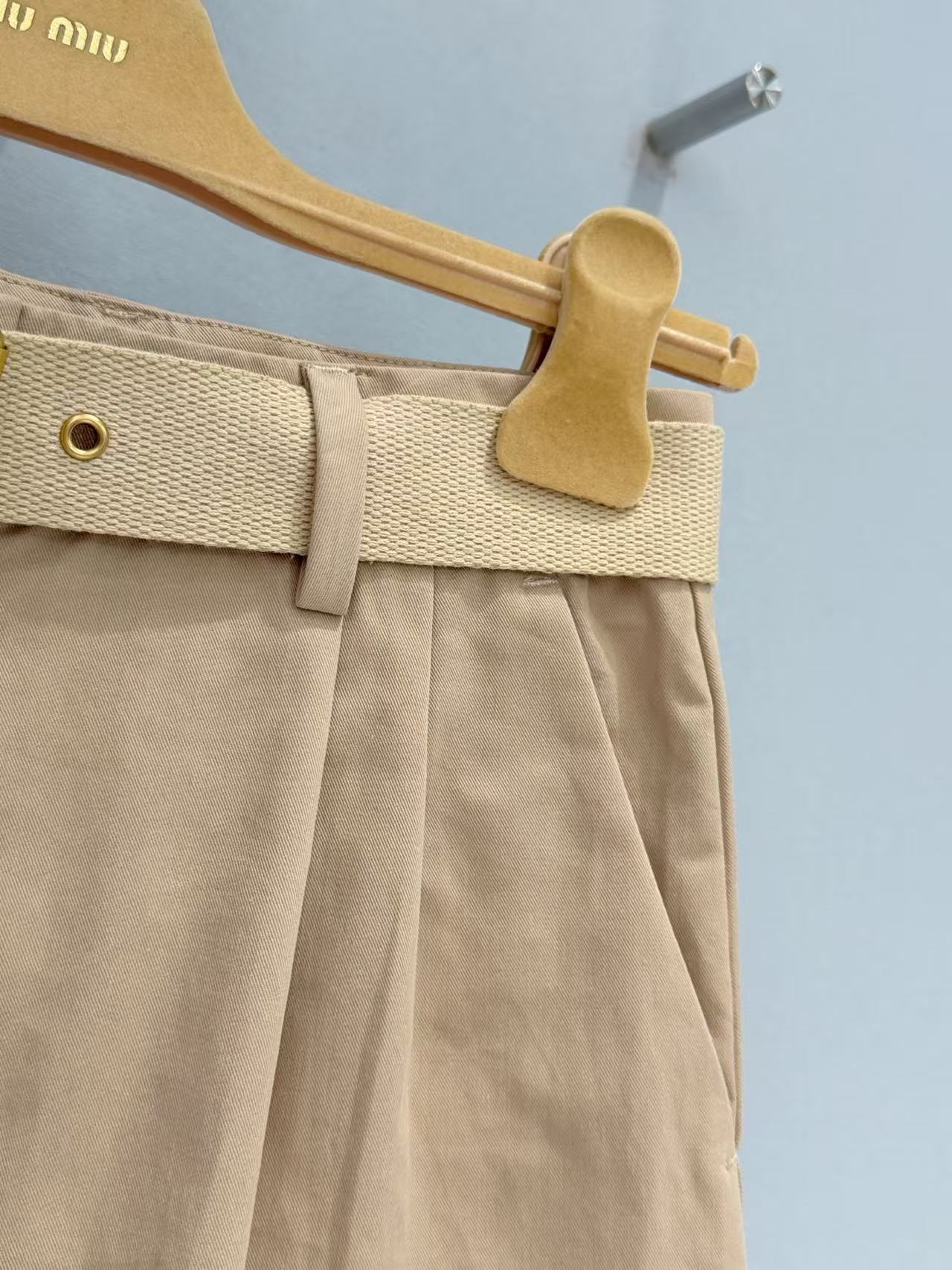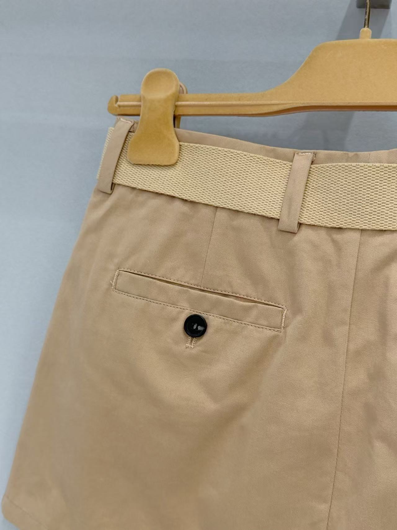 立體壓褶剪裁結合皮革細節腰帶,能精準勾勒腰身並完美隱藏大腿多餘線條,展現出一種甜酷平衡、且充滿鬆弛感的高級質感,無論是搭配 T 恤還是針織衫,都能輕鬆拿捏那份獨有的時髦格調。