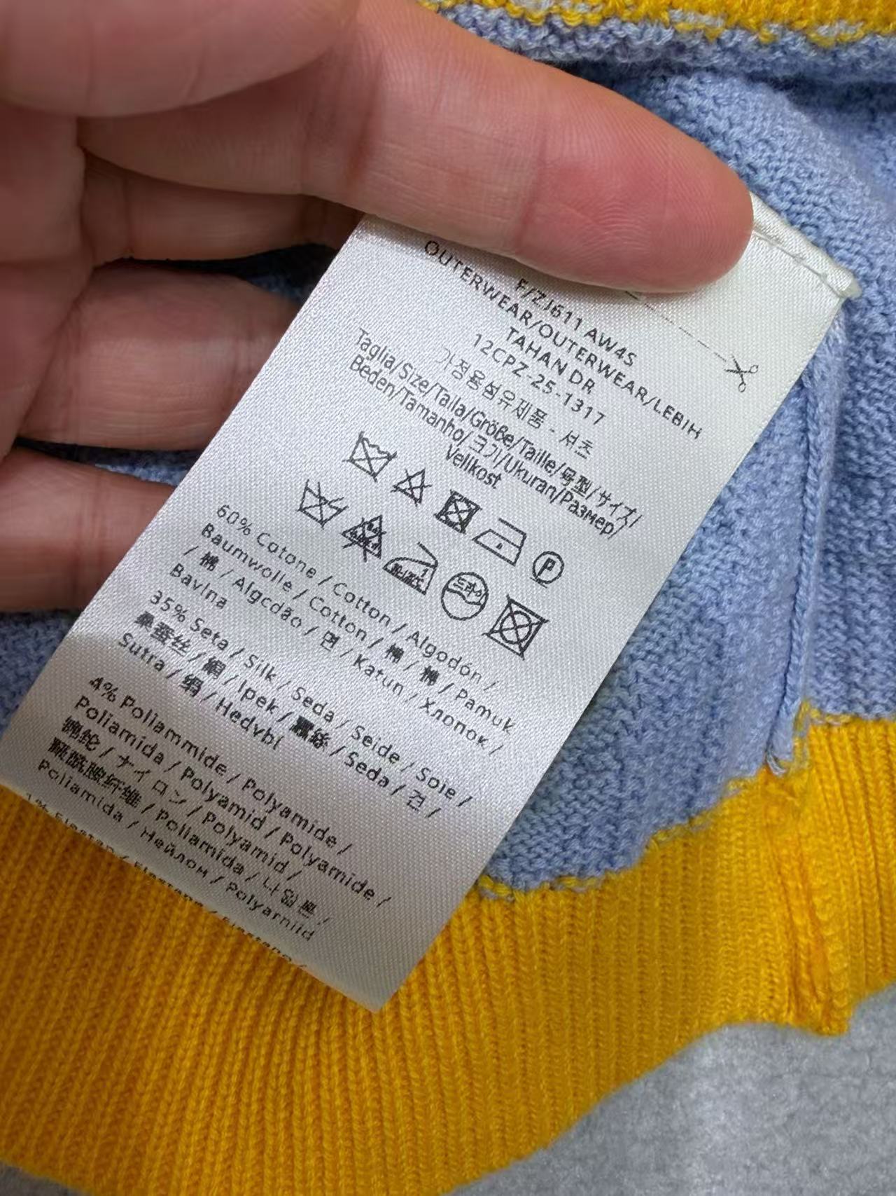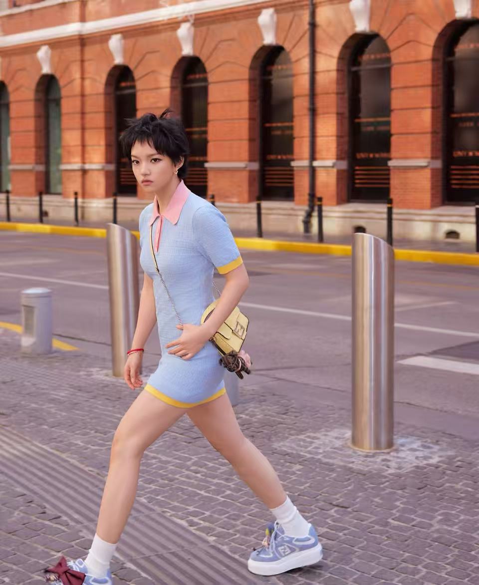霧霾藍、櫻花粉與亮黃色 的精妙配色,搭配經典的翻領剪裁,展現出一種甜美與酷颯平衡得剛剛好的層次美,是那種充滿辨識度的「靈魂單品」