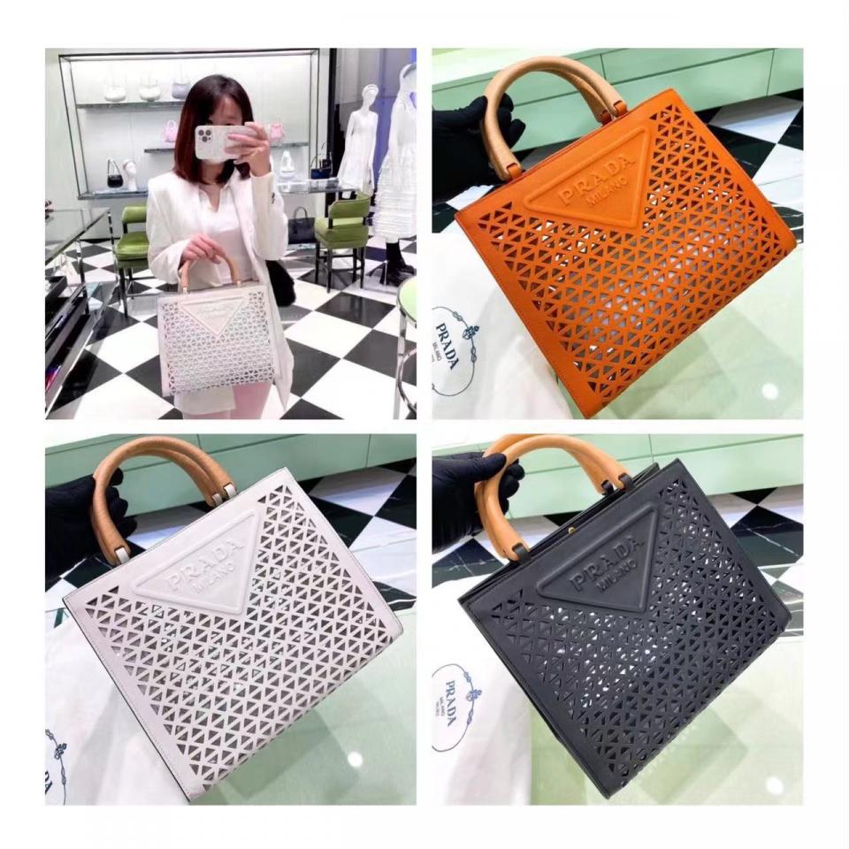 2022春夏新品 三角標logo鏤空手提購物袋 容量超大