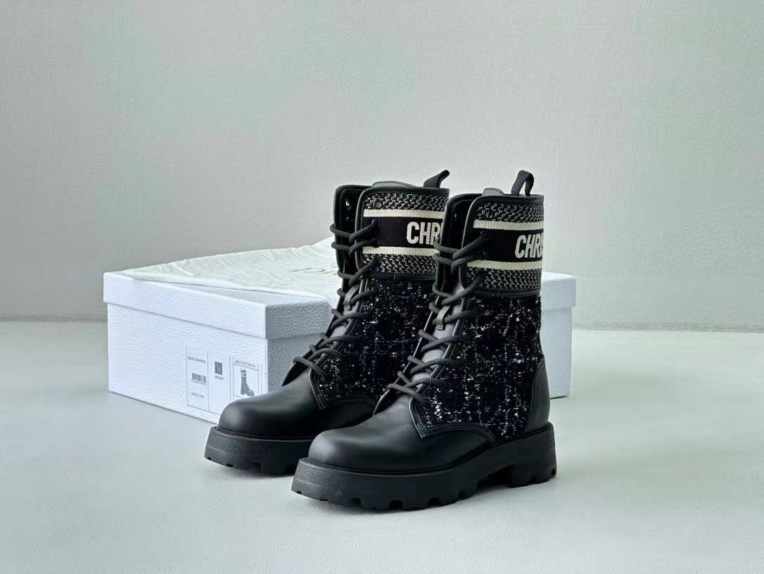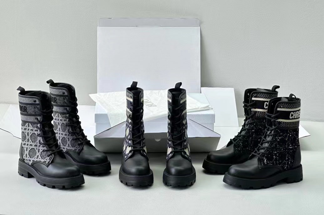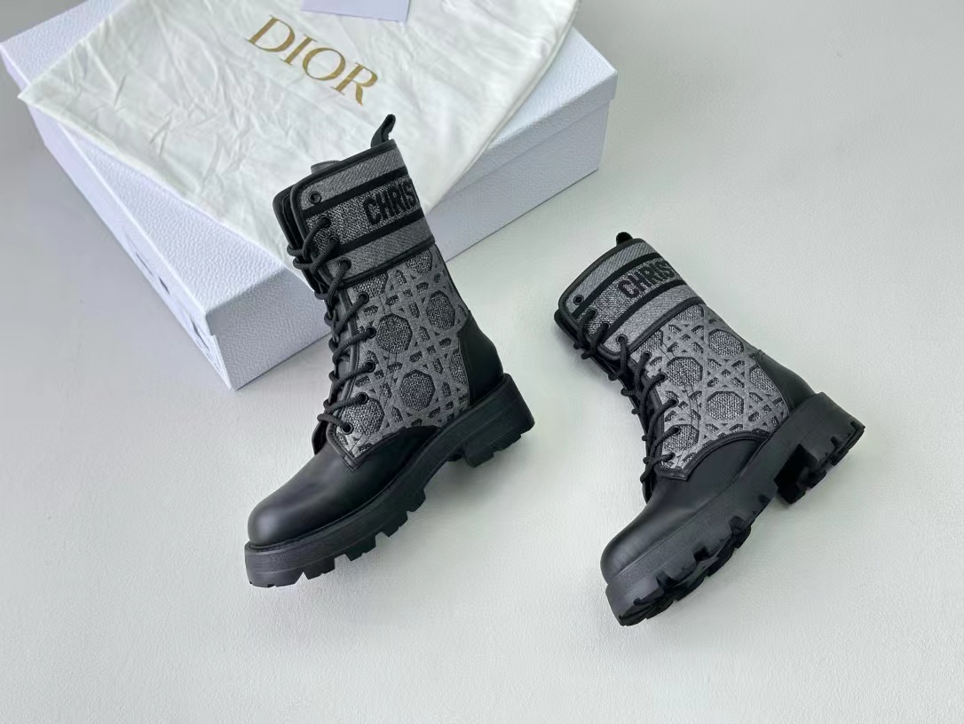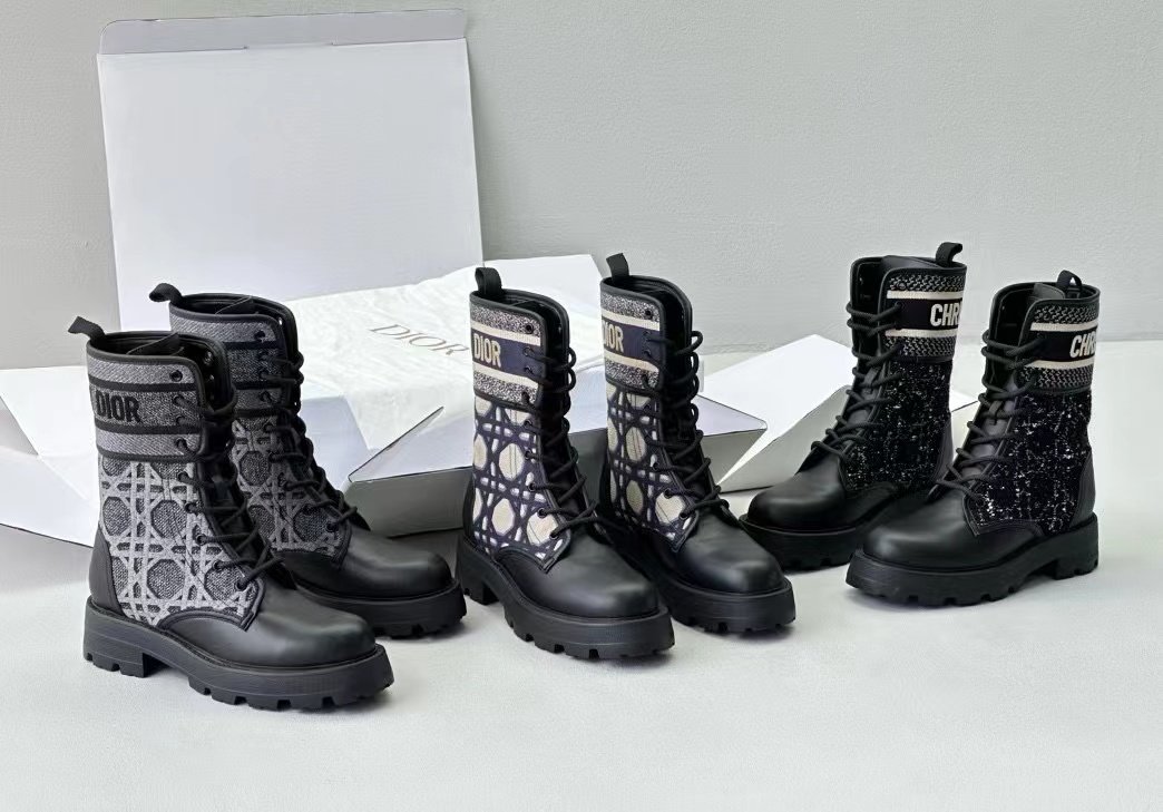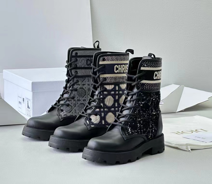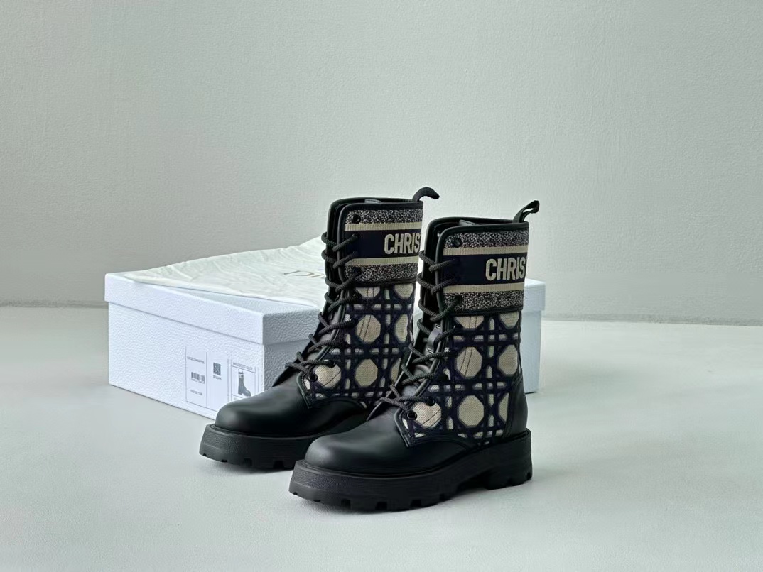 2024早秋新品 D家藤格紋刺繡綁帶馬丁靴 秋冬必入