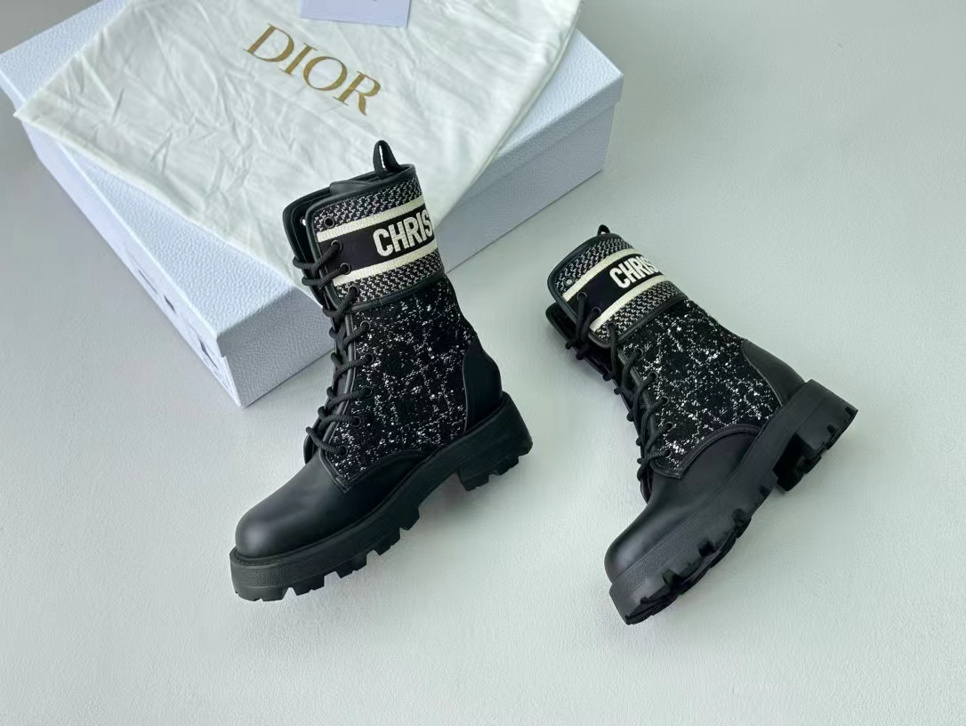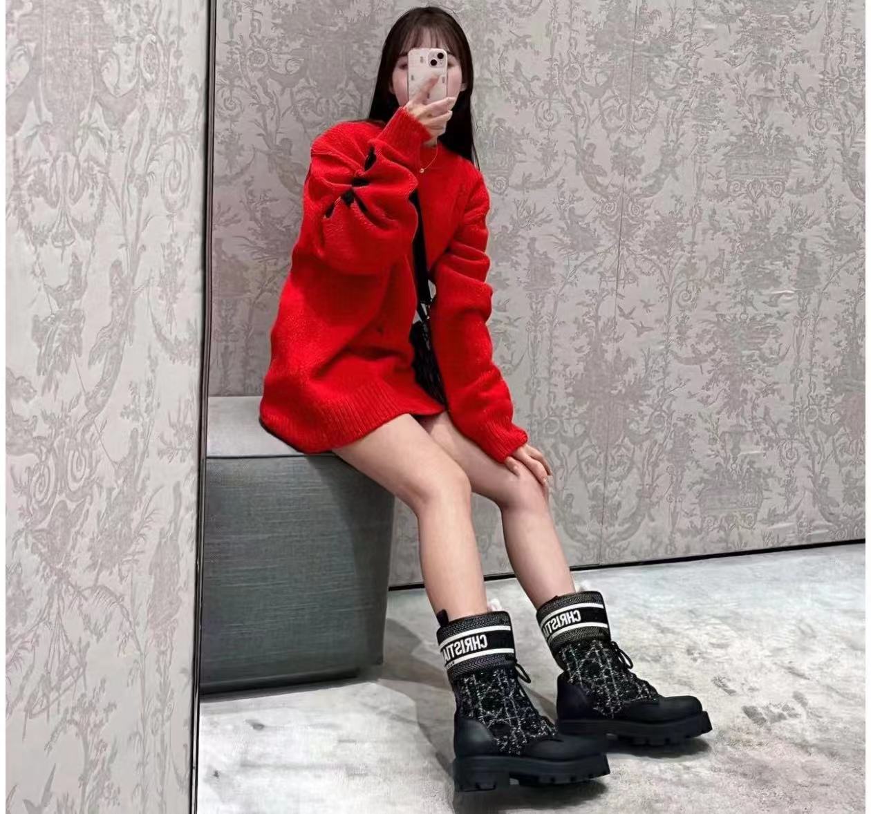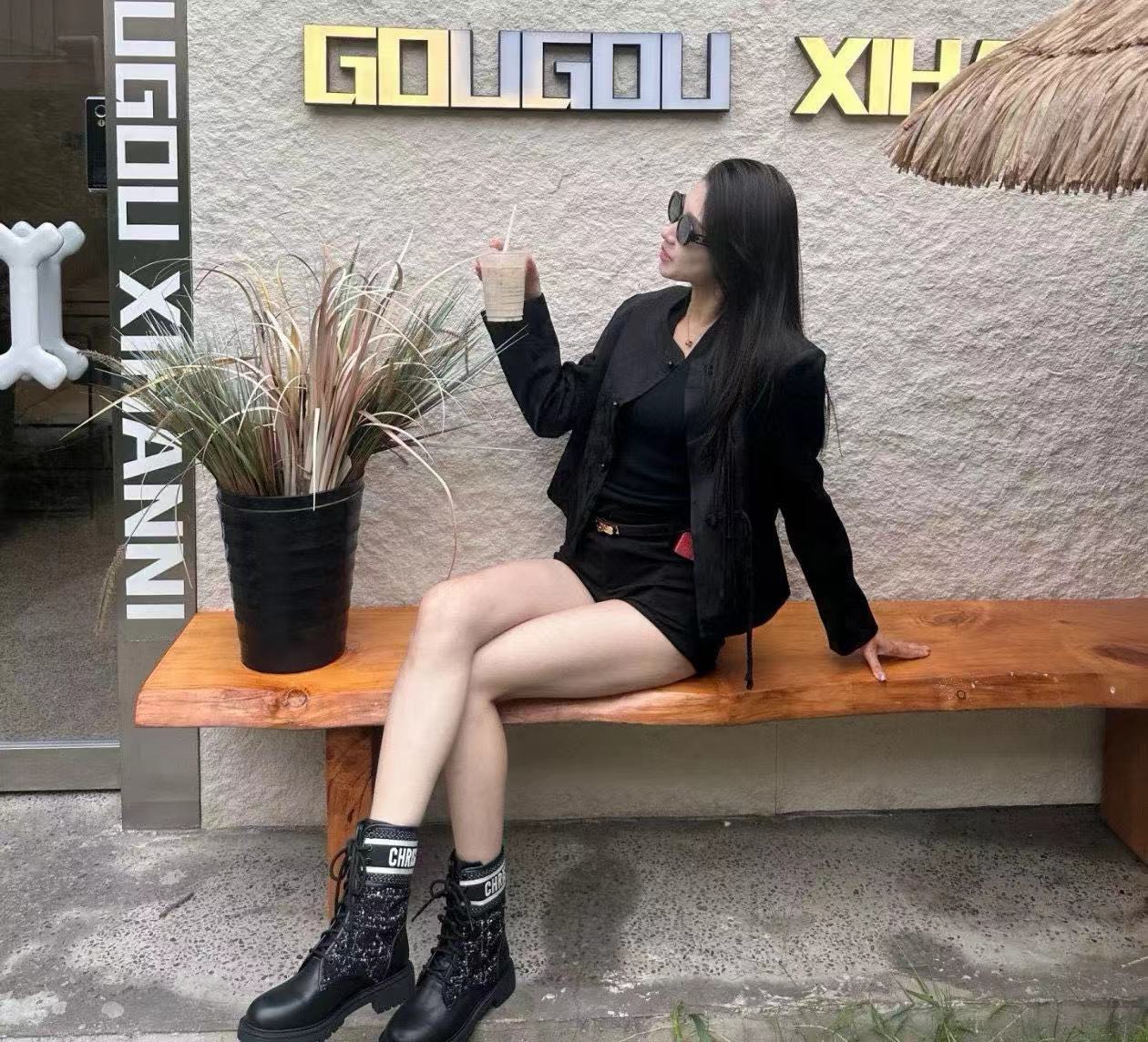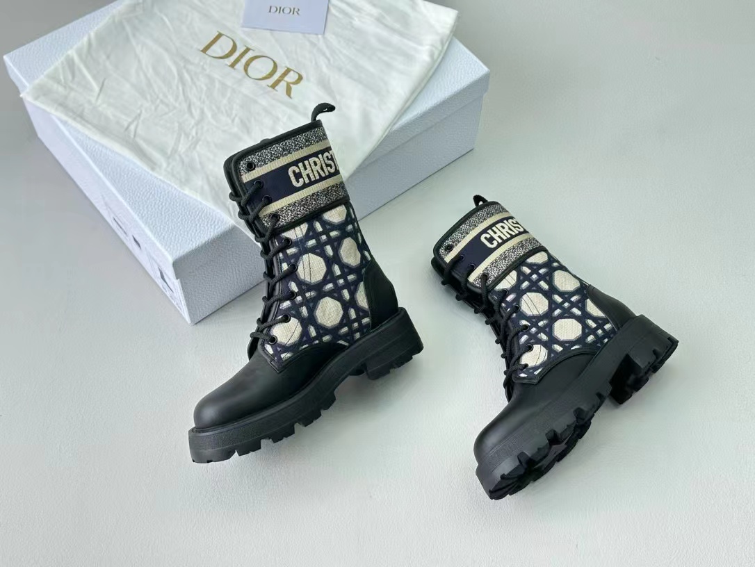 2024早秋新品 D家藤格紋刺繡綁帶馬丁靴 秋冬必入