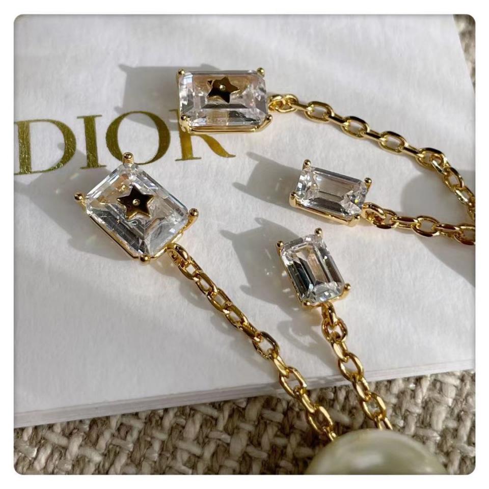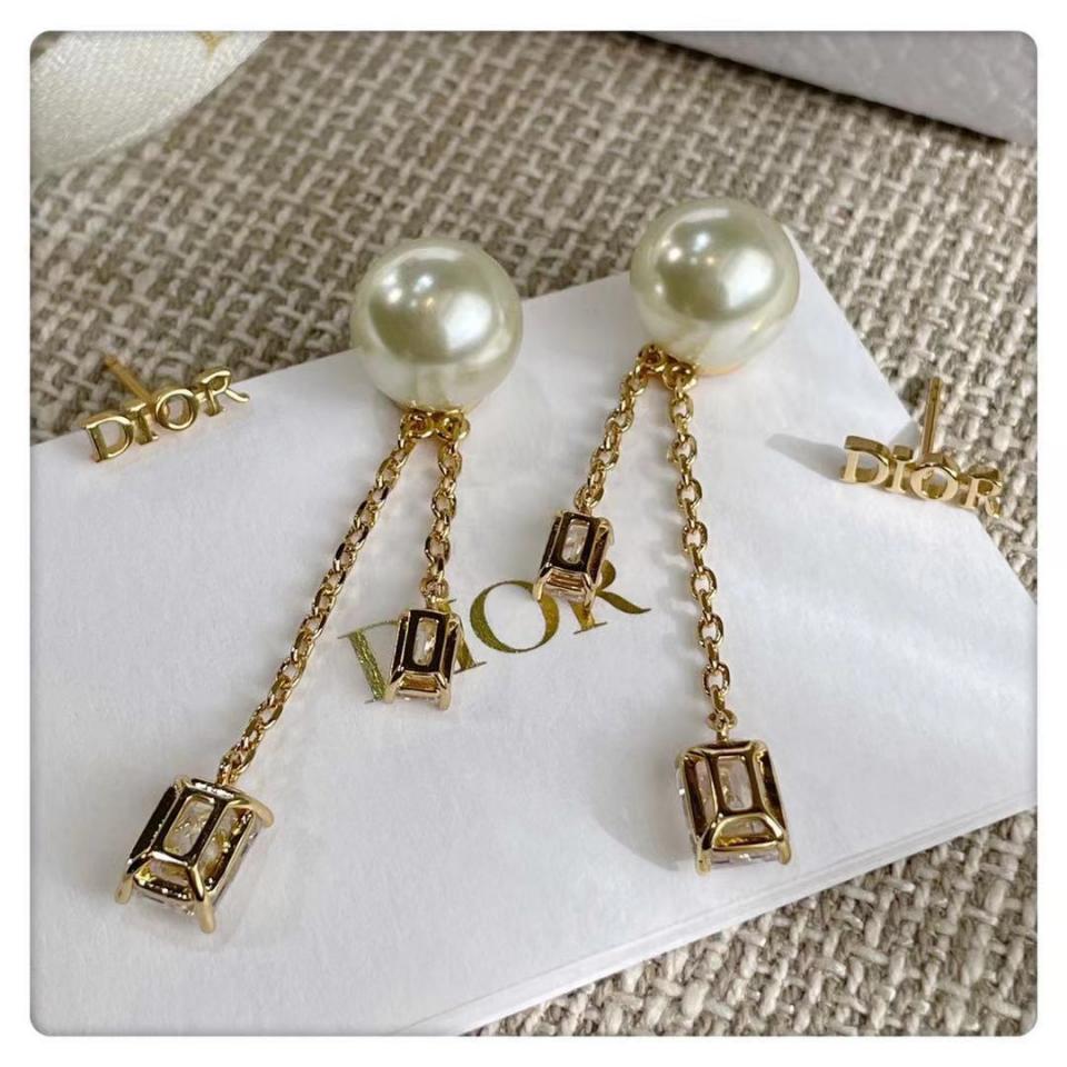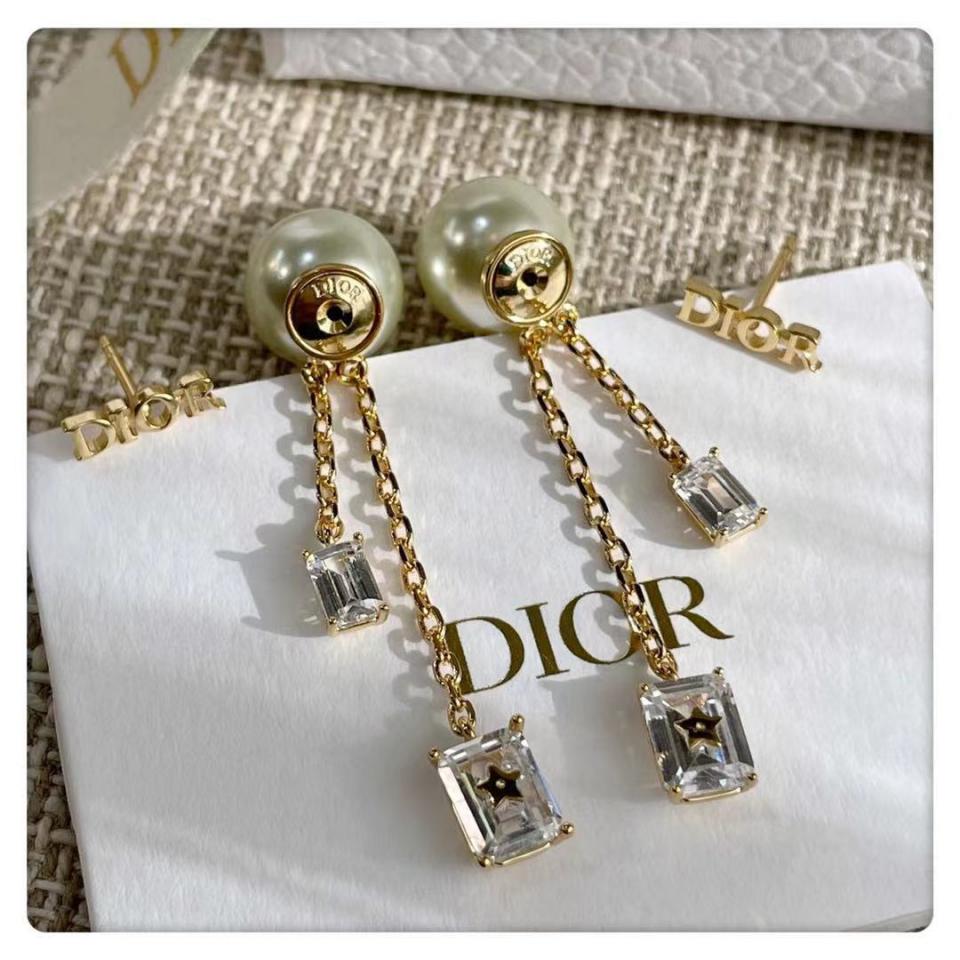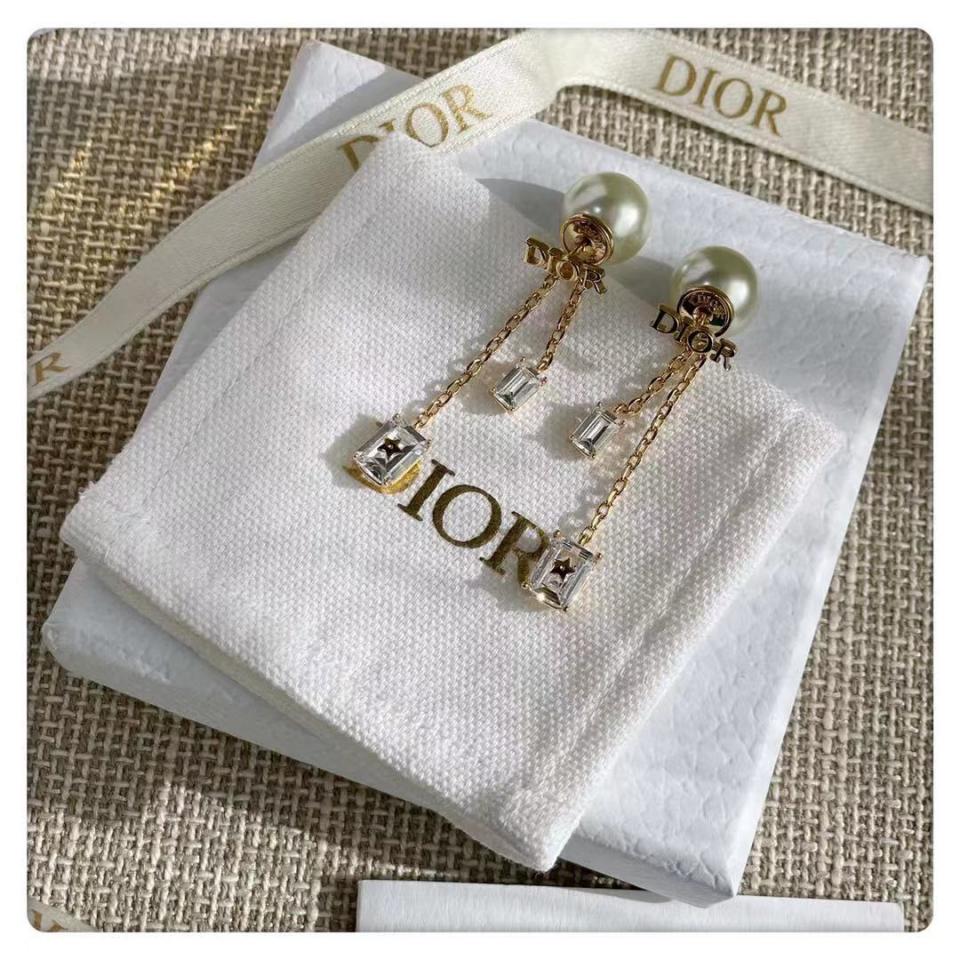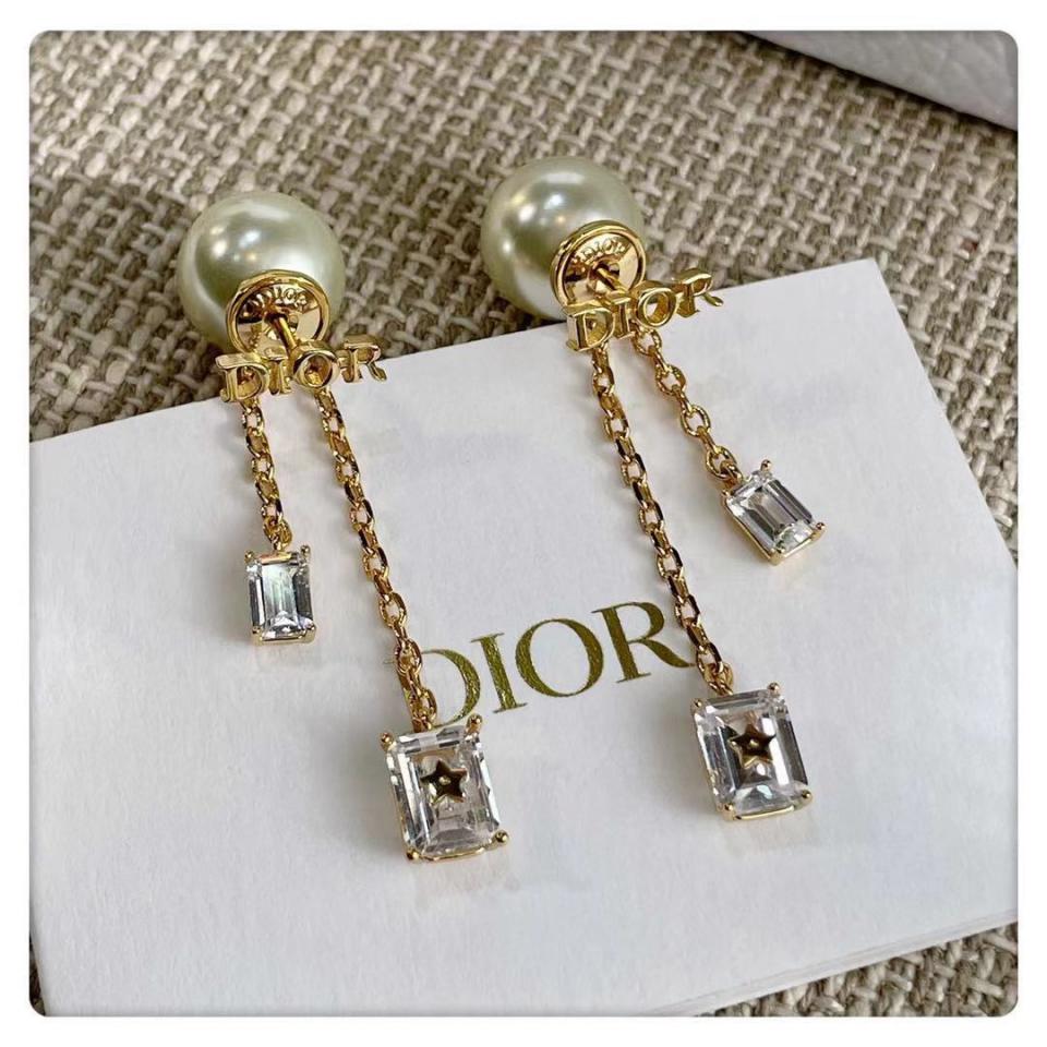 2021早秋 D家字母方形小水晶珍珠耳環