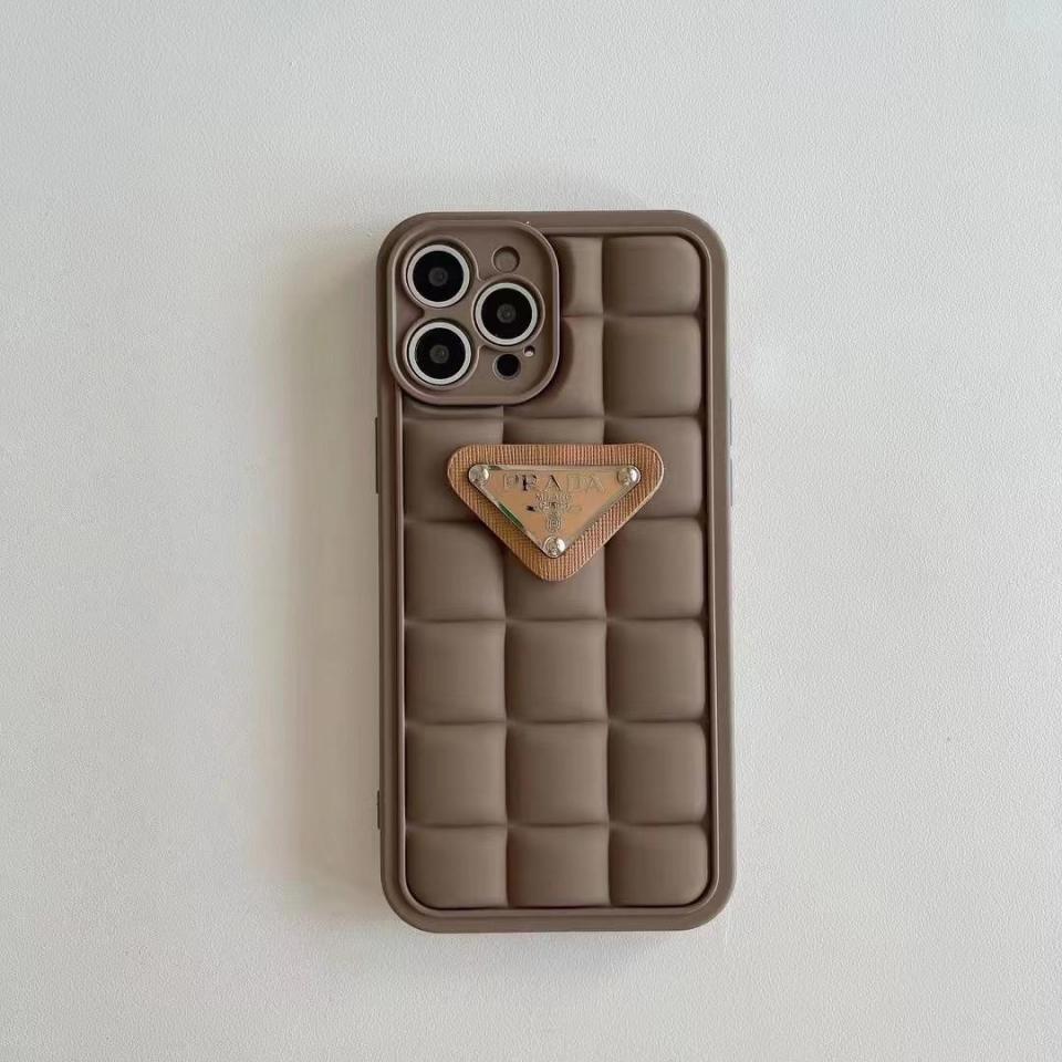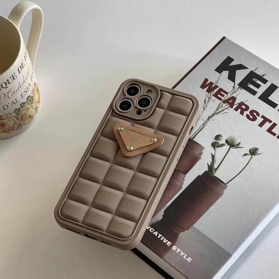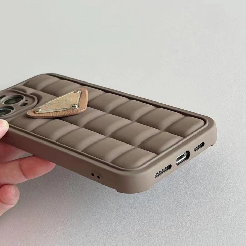 2022秋冬新品 P家軟膠3D凹凸立體方塊手機殼(棕色) 配色超美