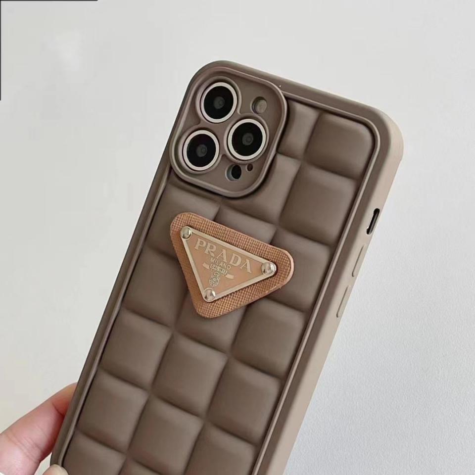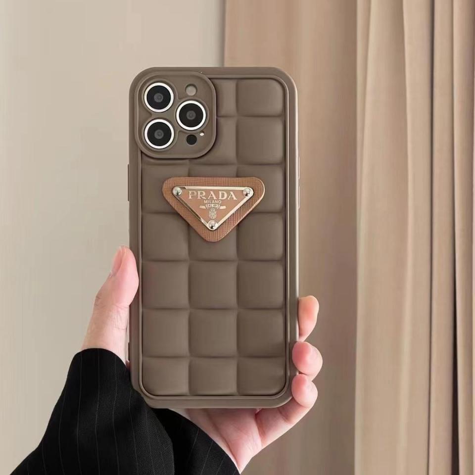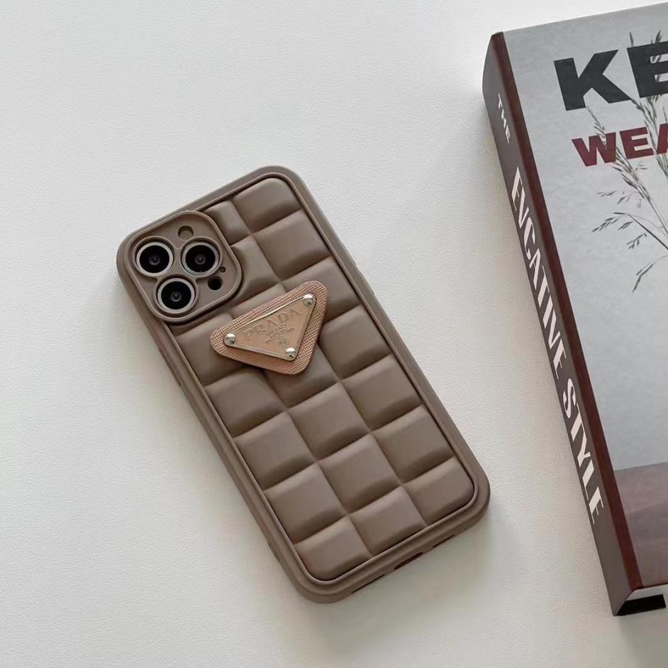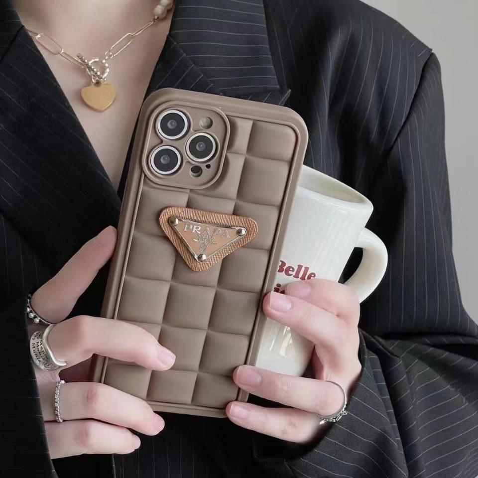 2022秋冬新品 P家軟膠3D凹凸立體方塊手機殼(棕色) 配色超美
