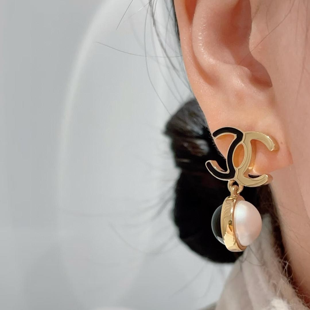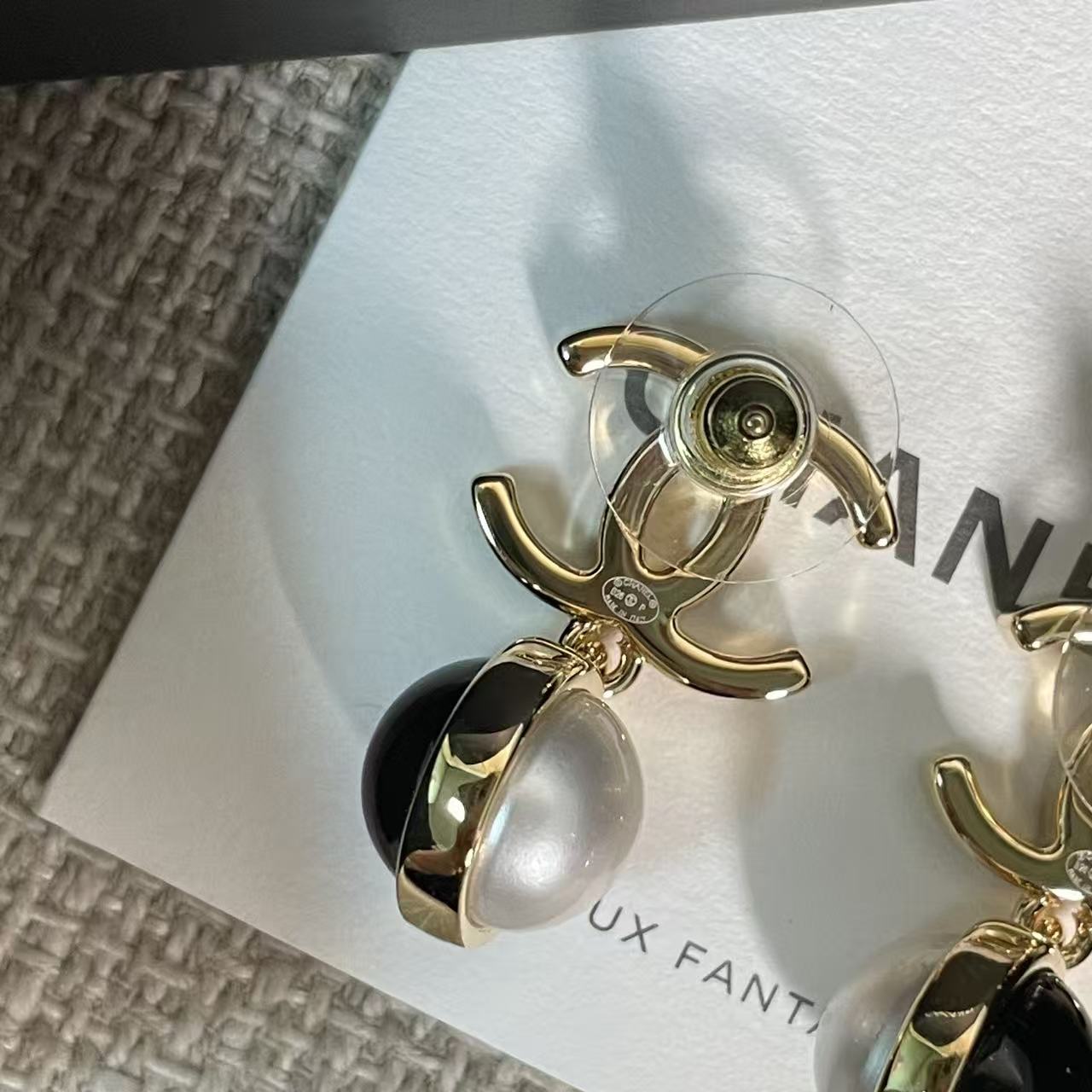 2026春夏新品 C家 拼C吊飾黑白球耳環