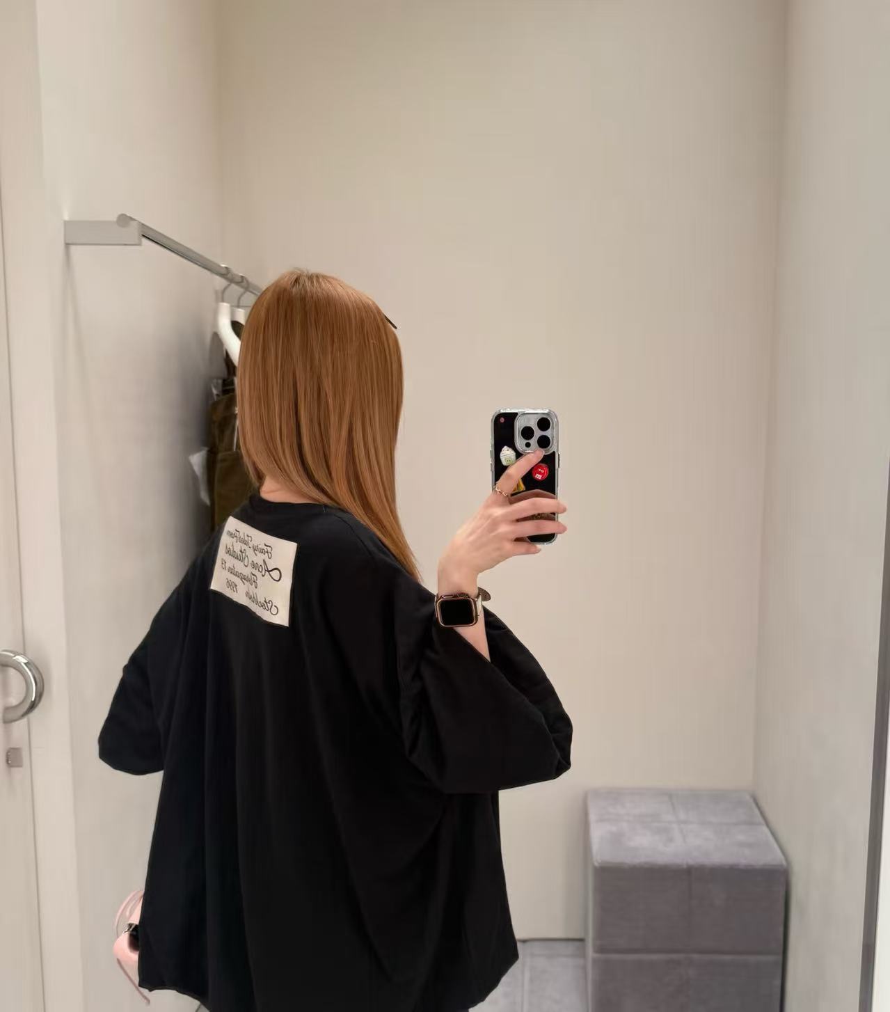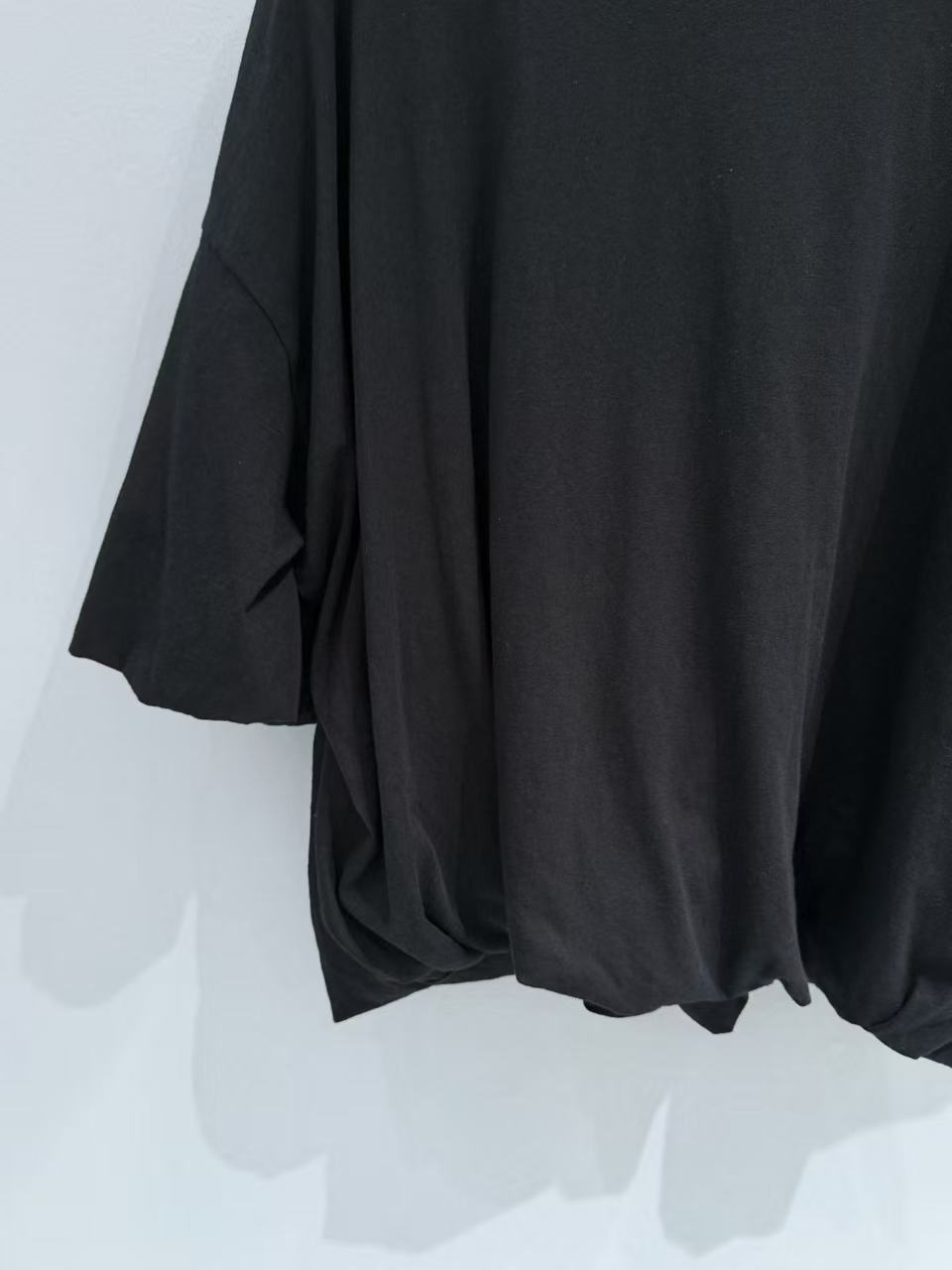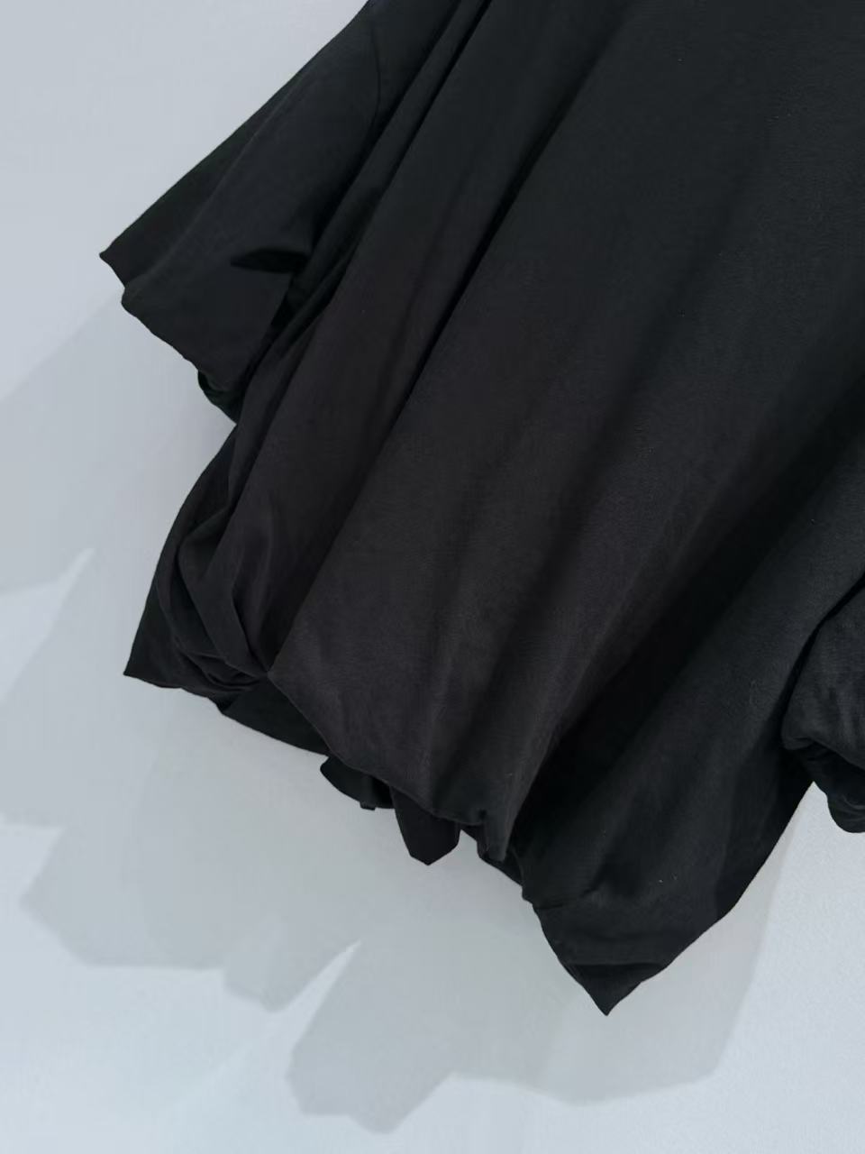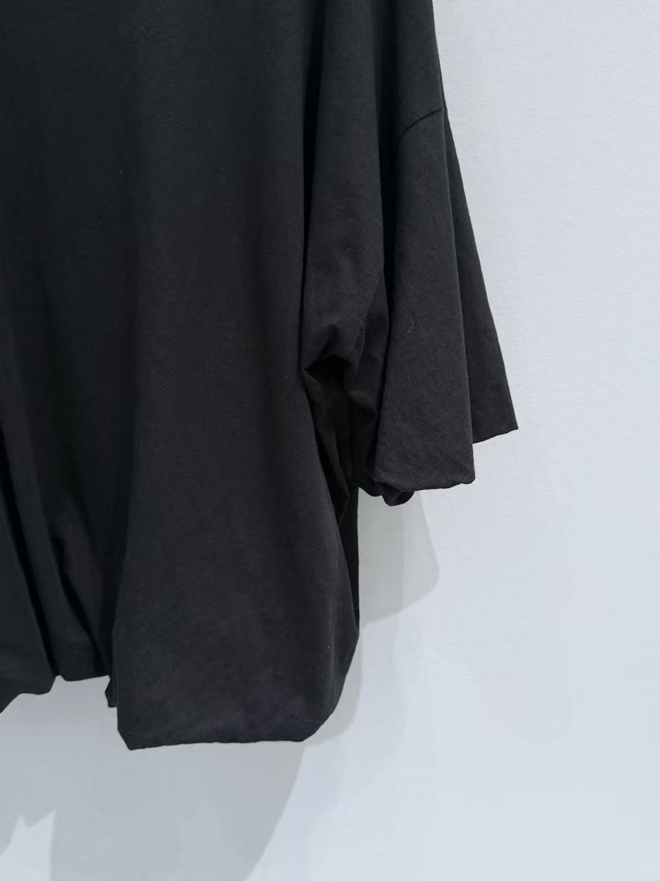 簡約卻充滿設計感,泡泡袖與雙層結構帶來特別的立體輪廓,胸前標語低調又有態度,絕對是百搭單品。