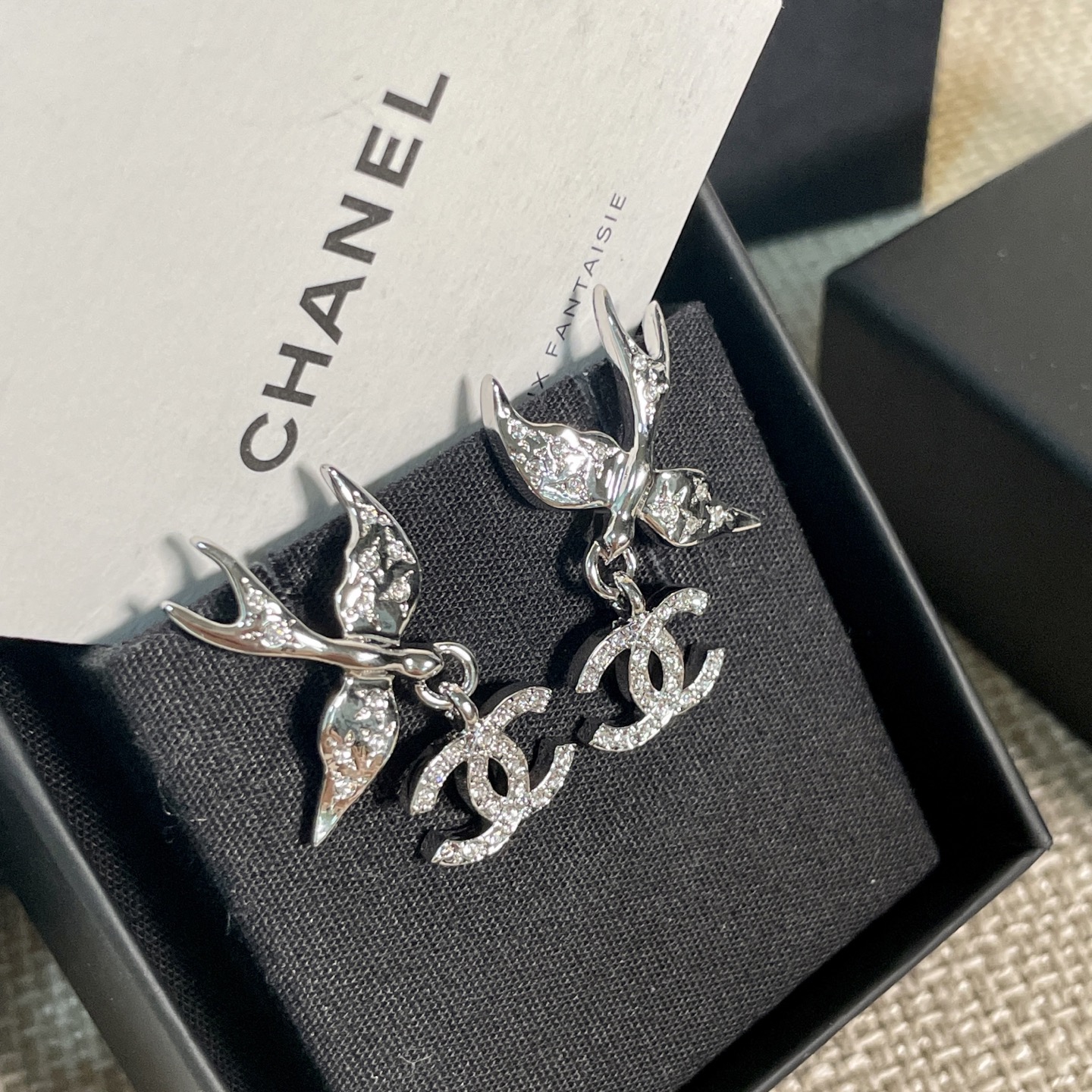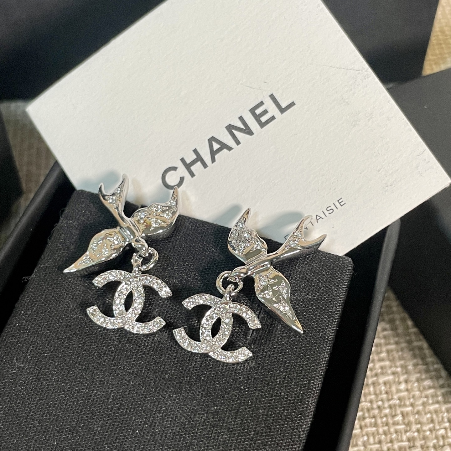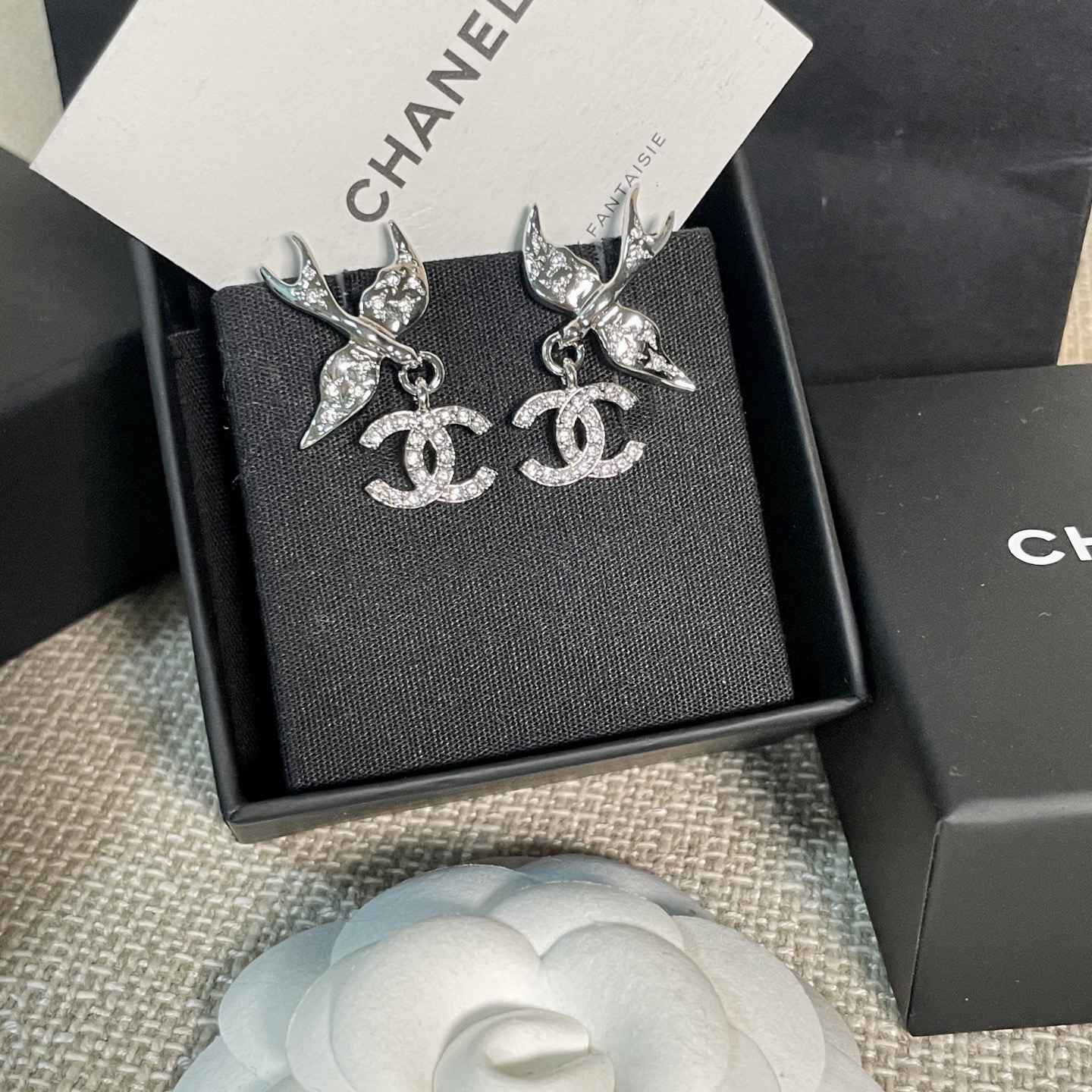 《尺寸規格》耳環總高約3.1cm,飛鳥寬約2.5cm,雙C寬約1.3cm