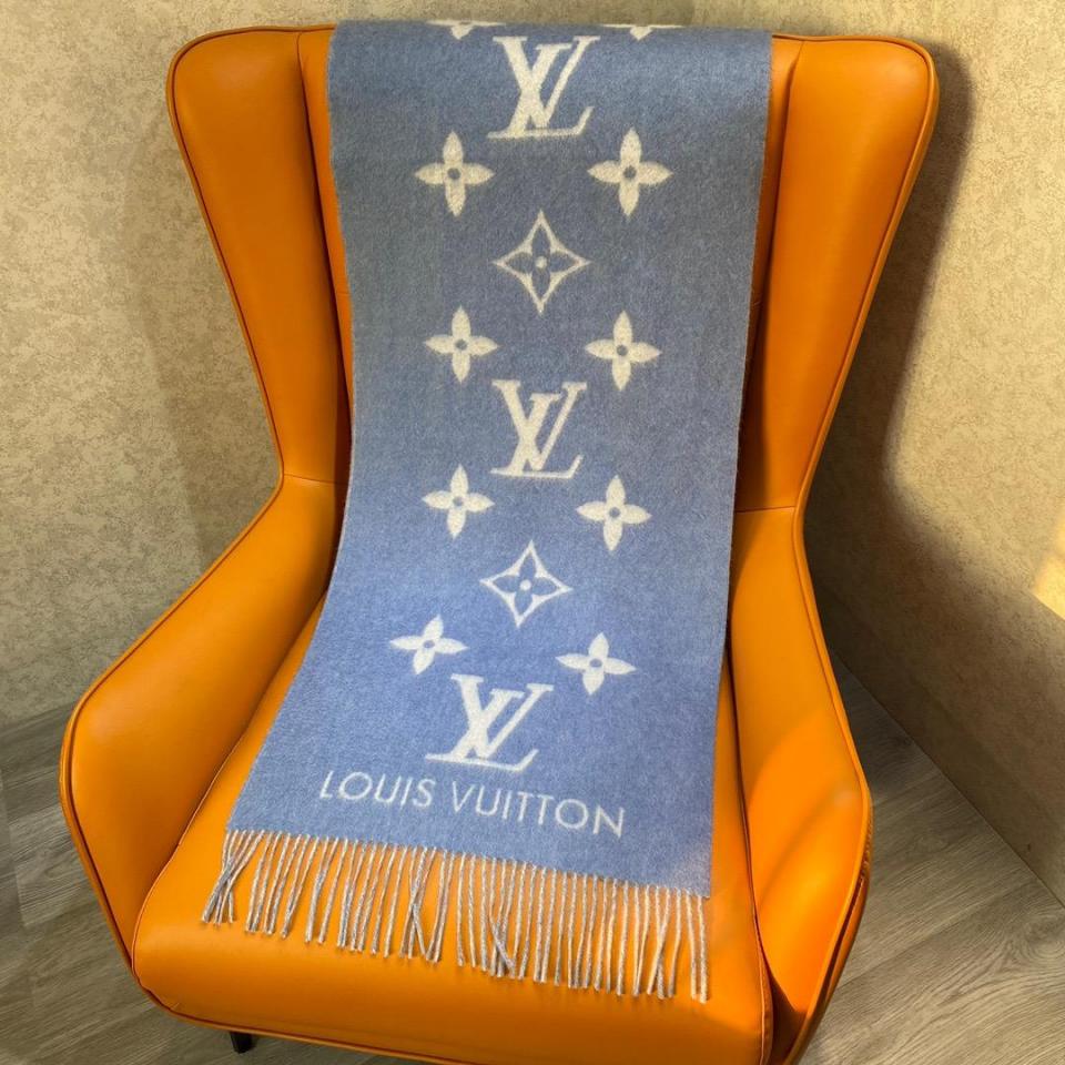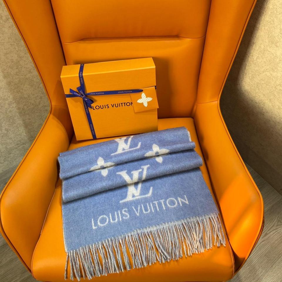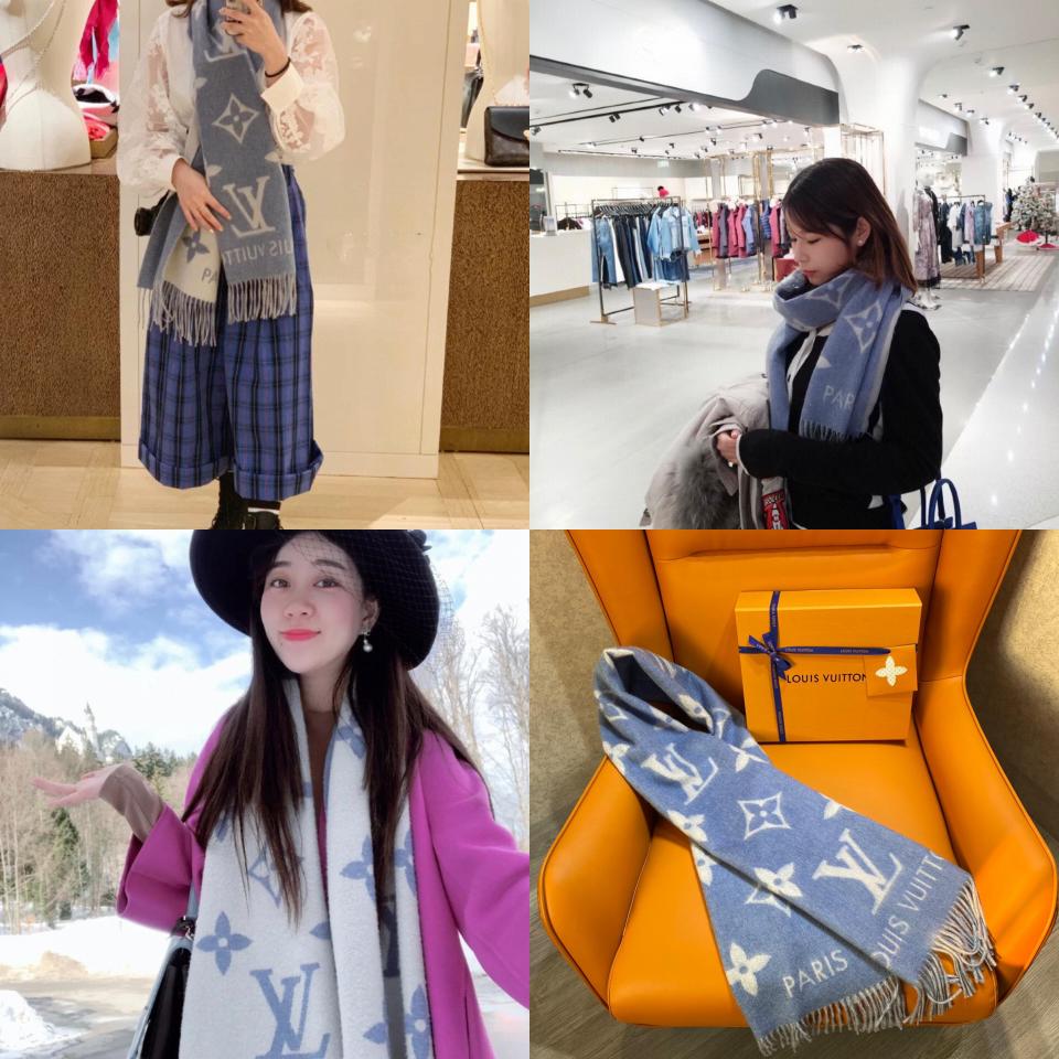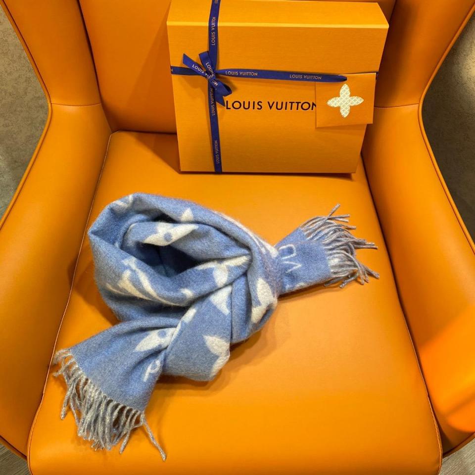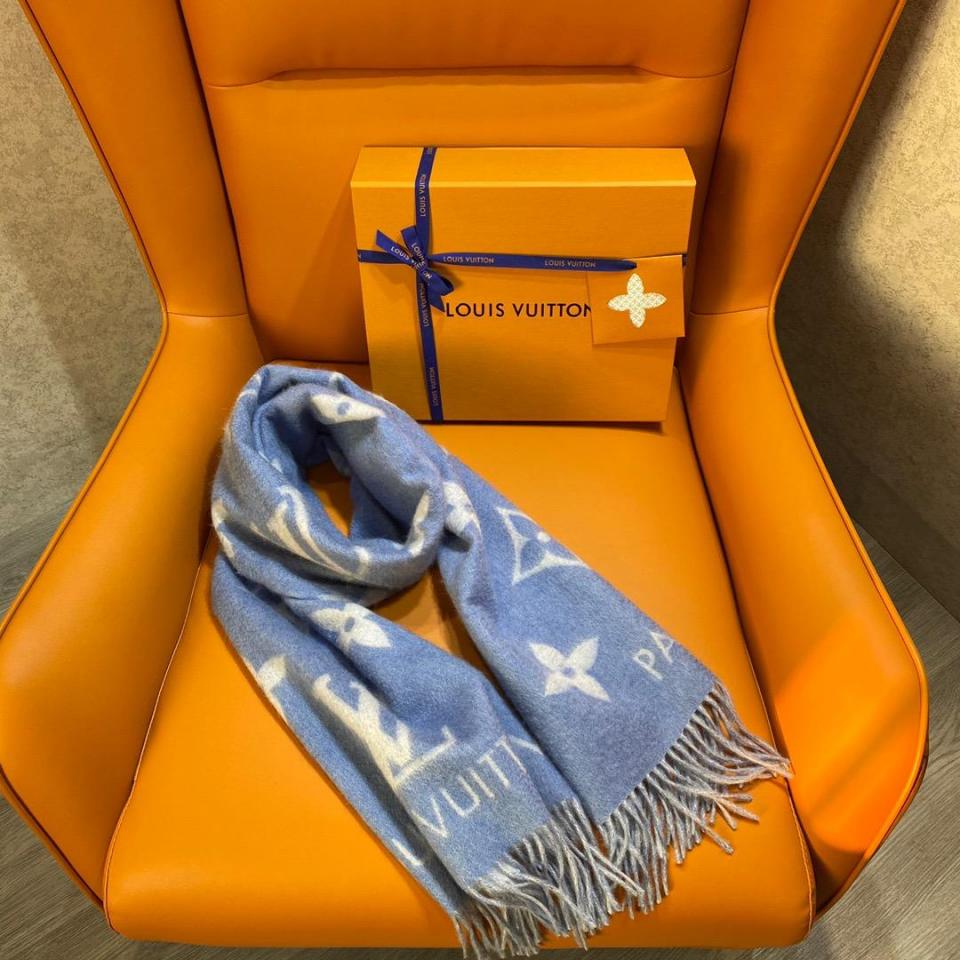 2022秋冬新品 L家大字樣logo羊絨圍巾(baby藍) 軟軟糯糯一點都不紮人