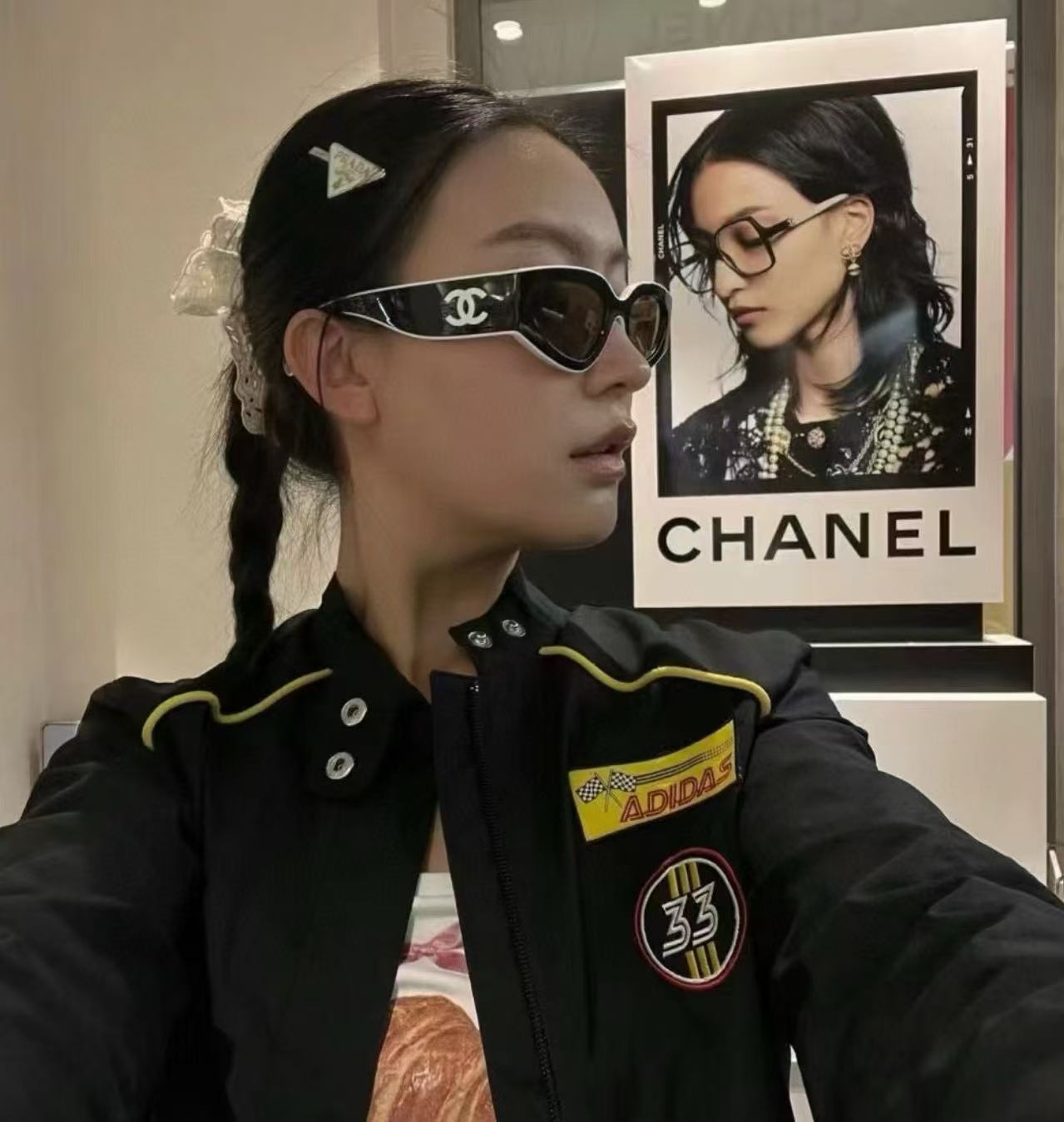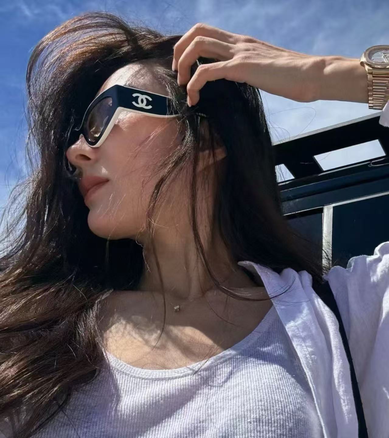 加上撞色雙C字母 Logo 點綴,加寬鏡腿的存在感十足,走在街上絕對吸睛。