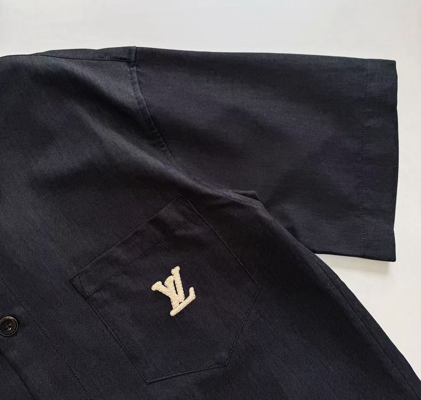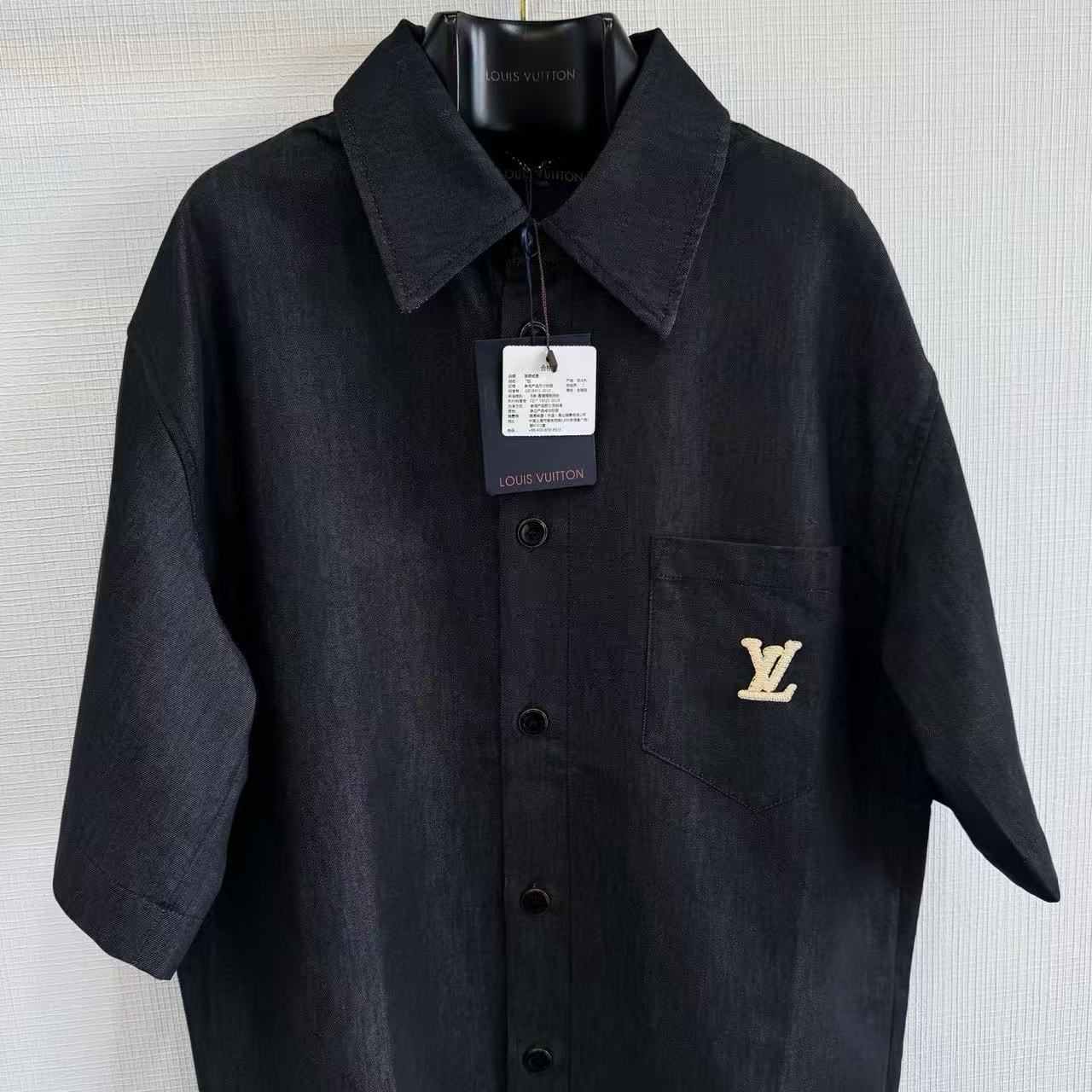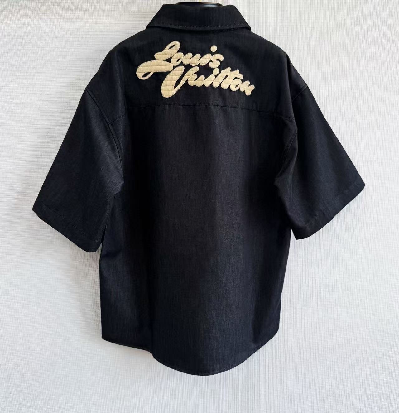 2025夏季新品 L家 拉菲草刺繡短袖牛仔襯衫
