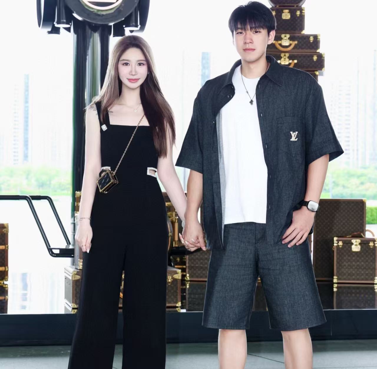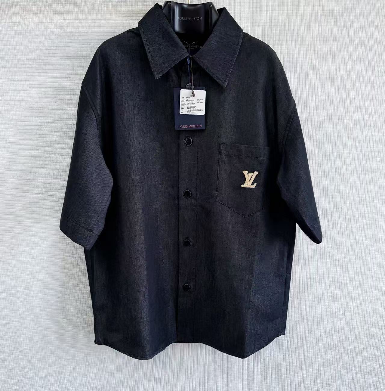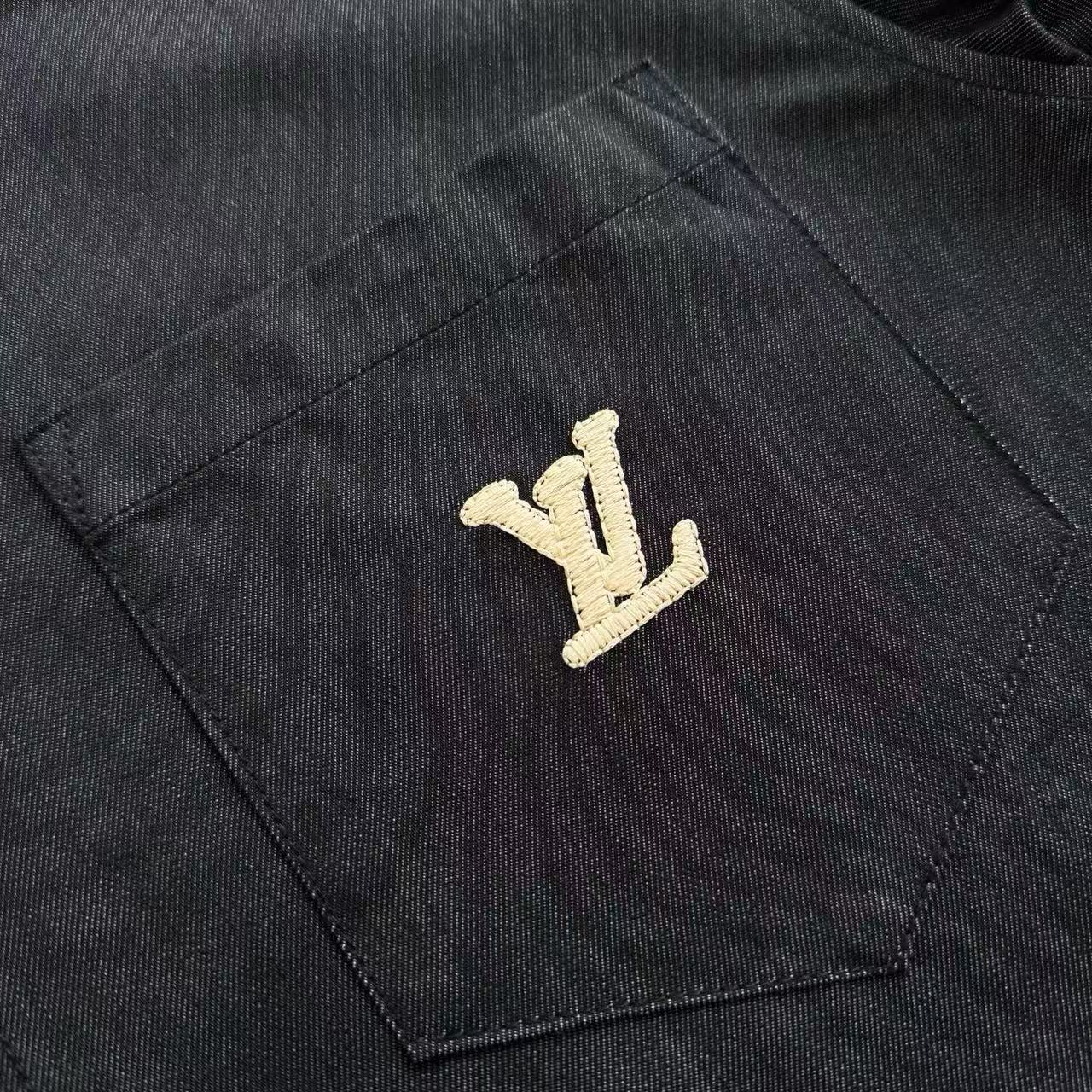 2025夏季新品 L家 拉菲草刺繡短袖牛仔襯衫