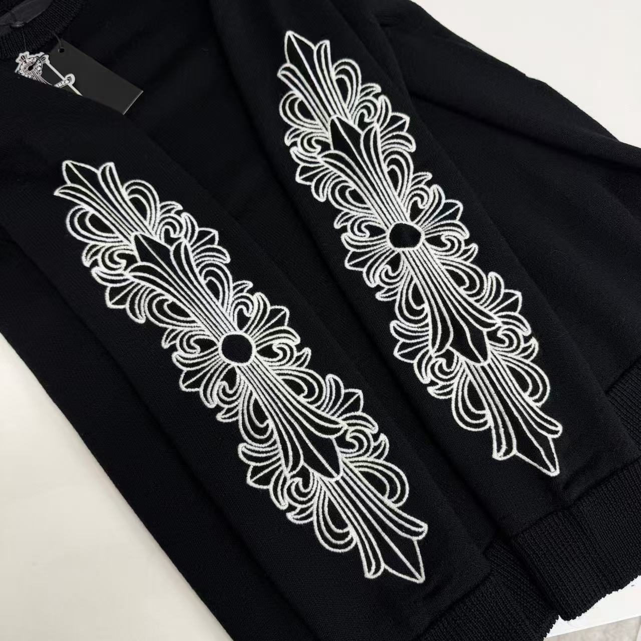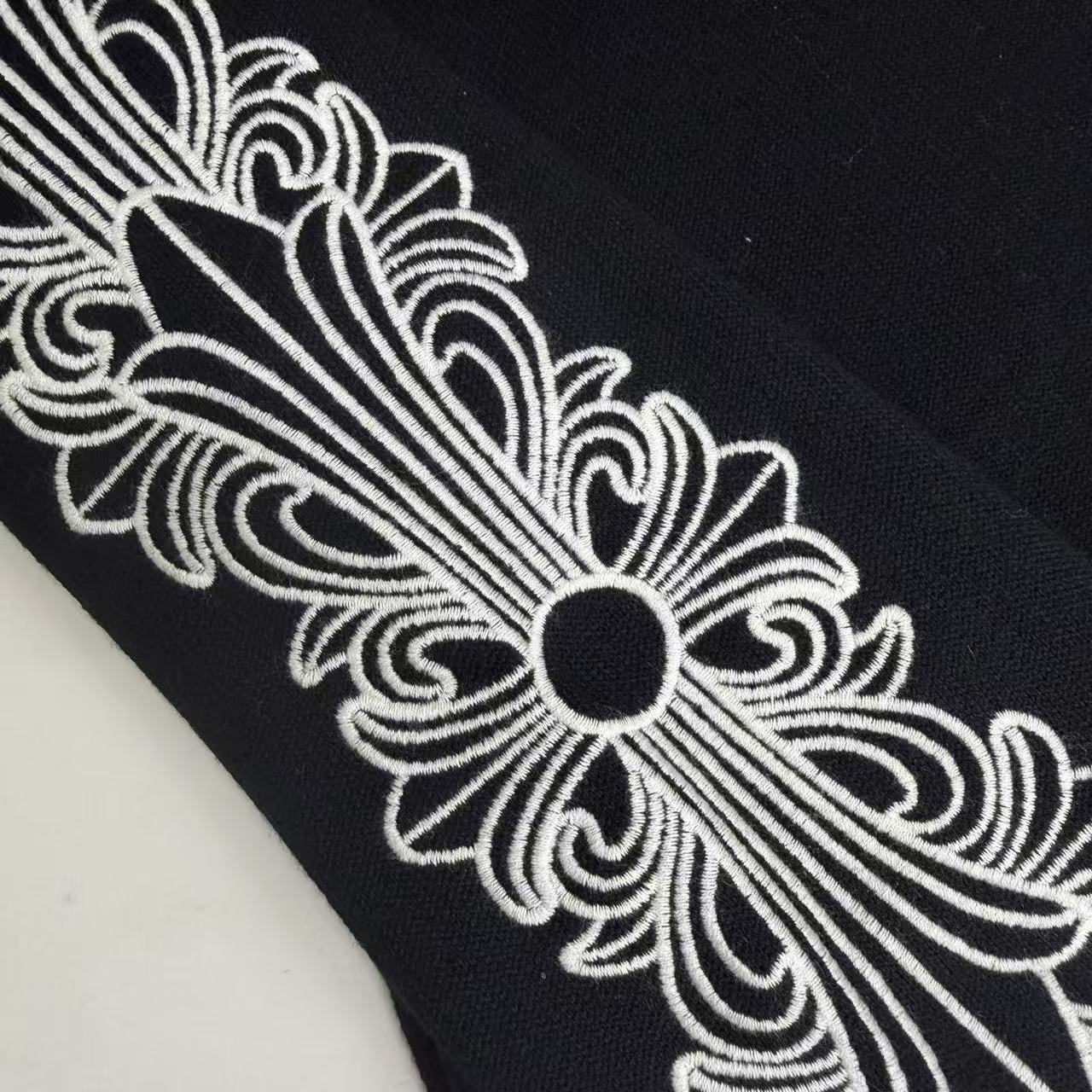 袖部 3 萬針水溶刺繡: 採用進口百靈達機台,高密度針步確保馬蹄花與十字圖騰立體清晰,視覺層次分明。