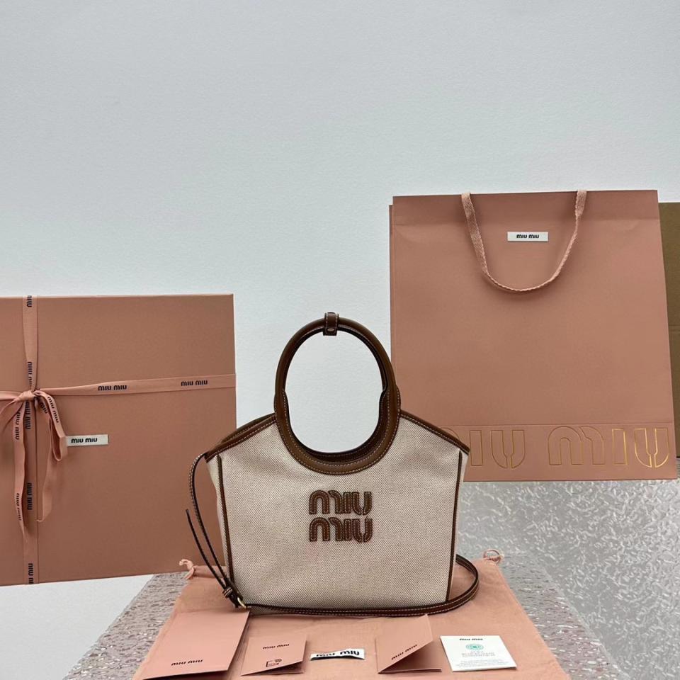 2024春夏 MIU家帆布拼皮手提包(小號)