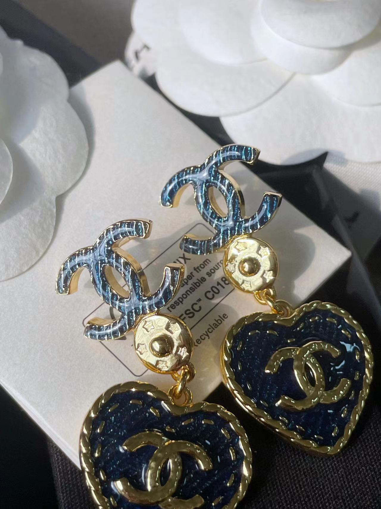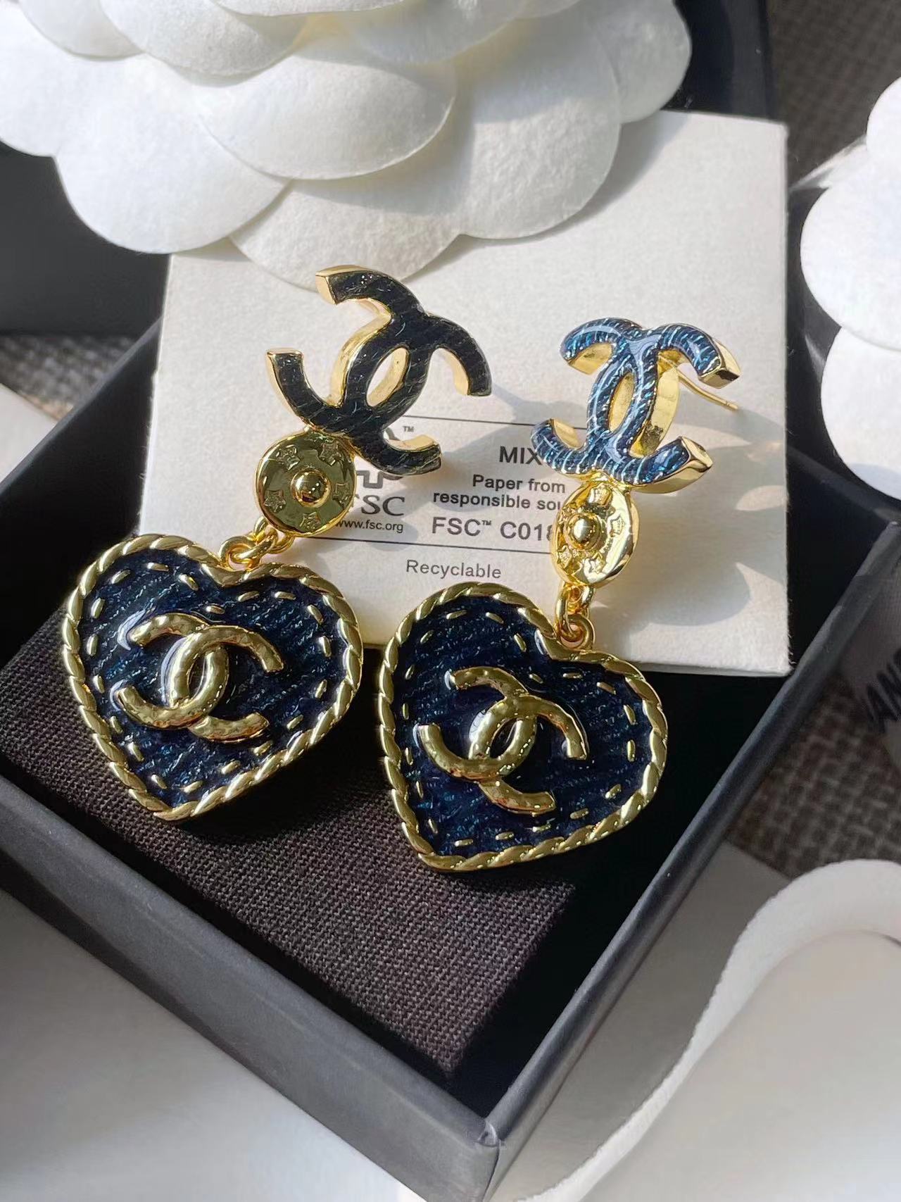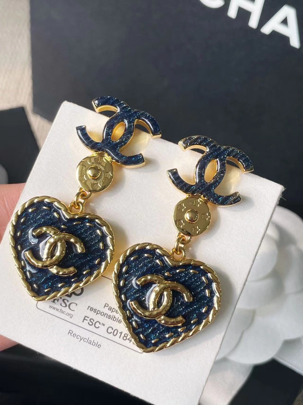 2024春夏 C家仿牛仔雙C吊愛心耳環