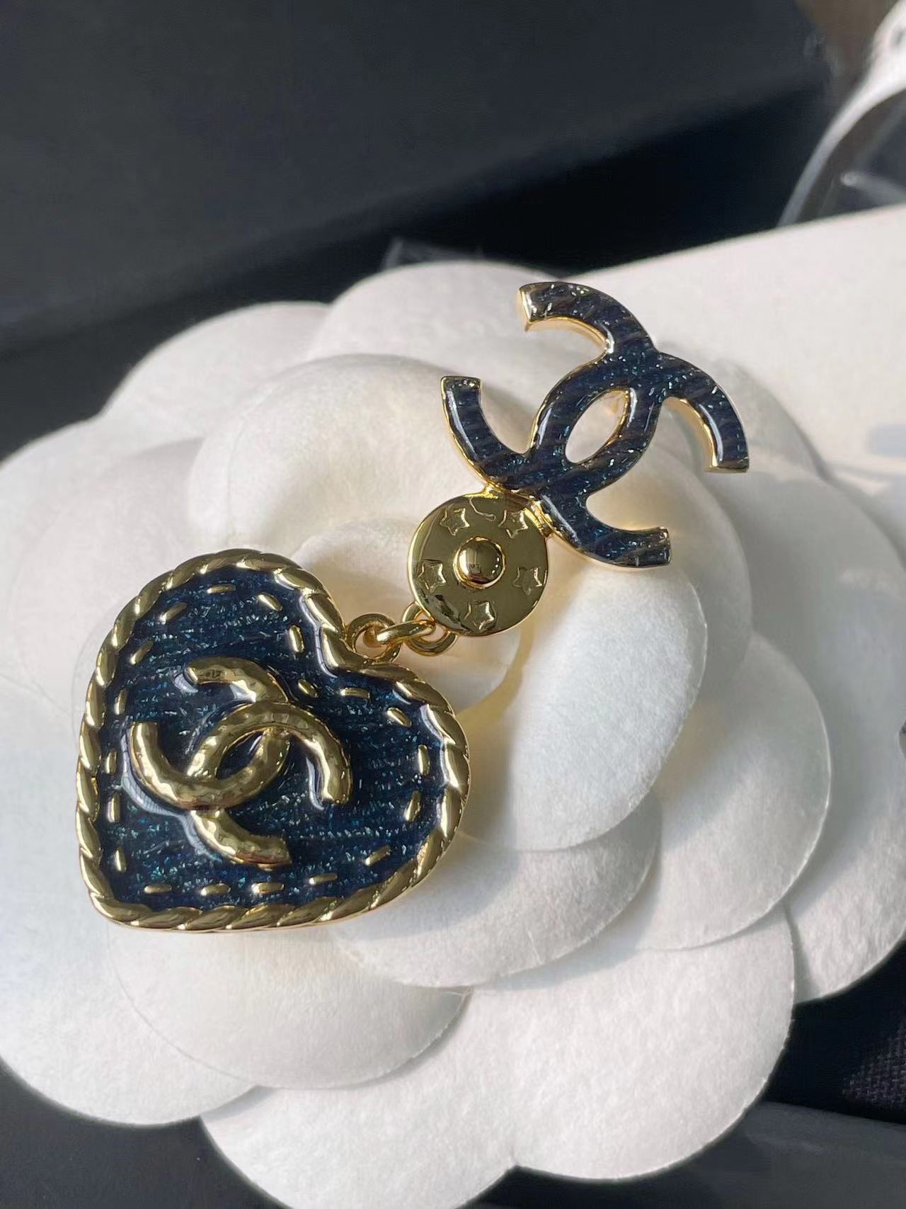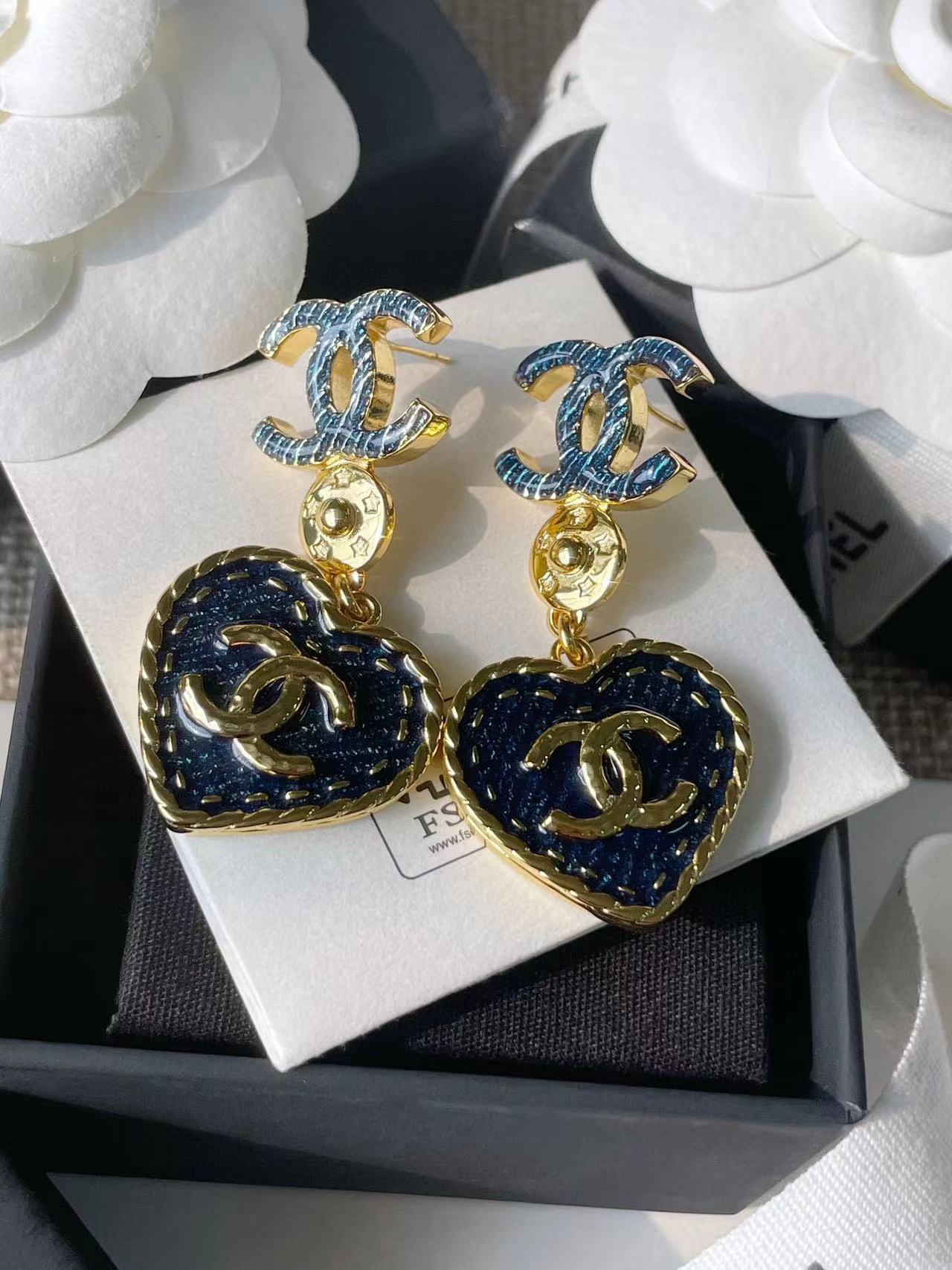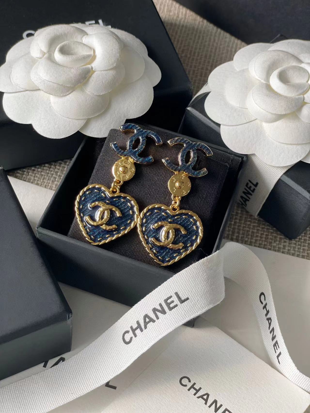2024春夏 C家仿牛仔雙C吊愛心耳環