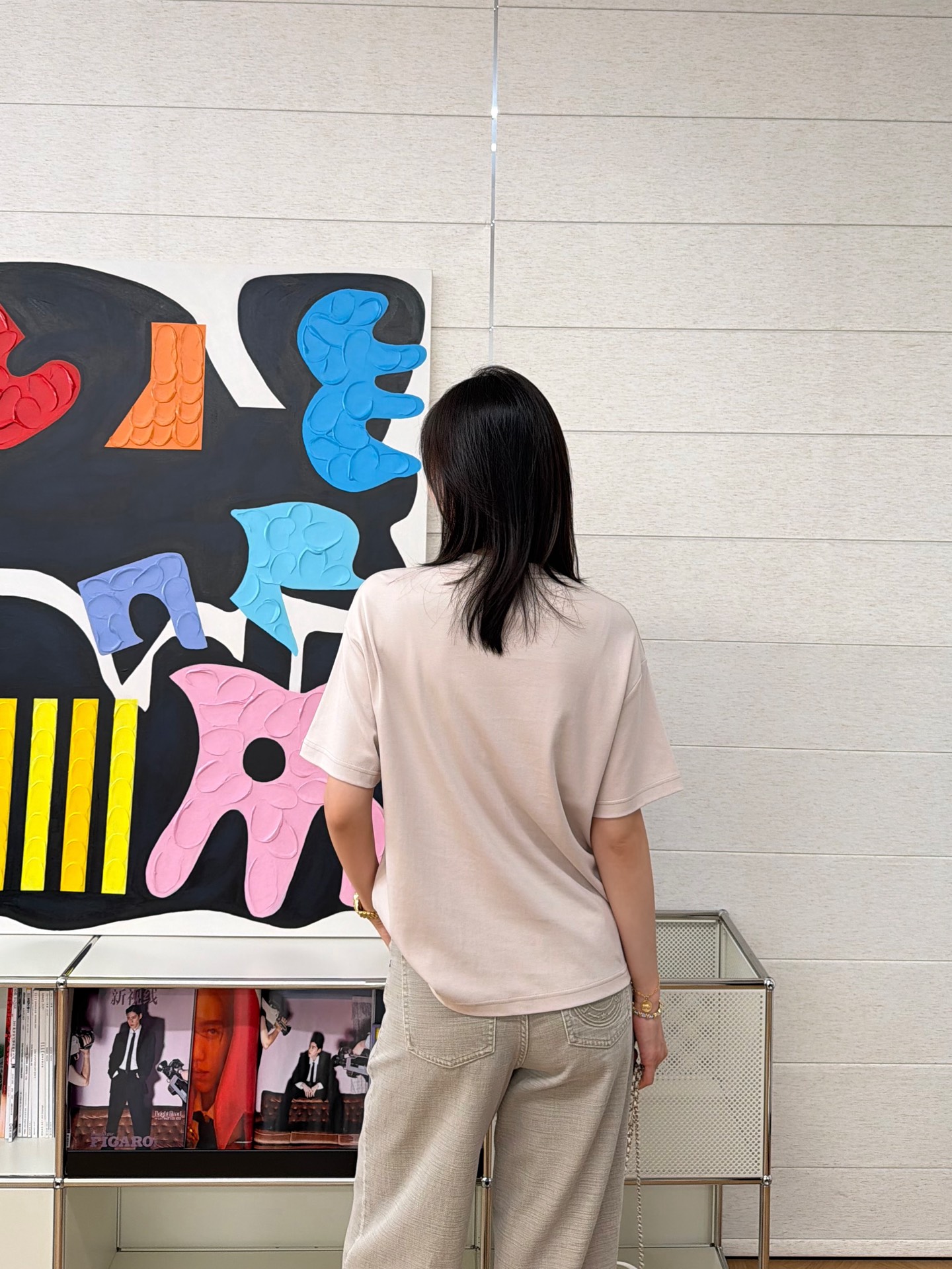 整體設計走的是簡約耐看的路線,但細節其實非常講究。胸前的刺繡圖案以禮盒紋樣為靈感呈現,精緻細膩,讓簡單的素色 T 恤多了一點設計感。