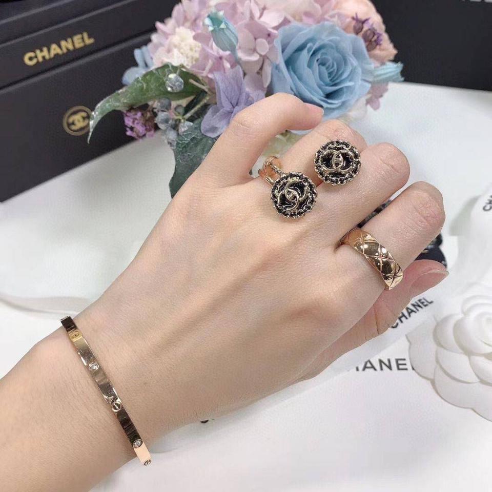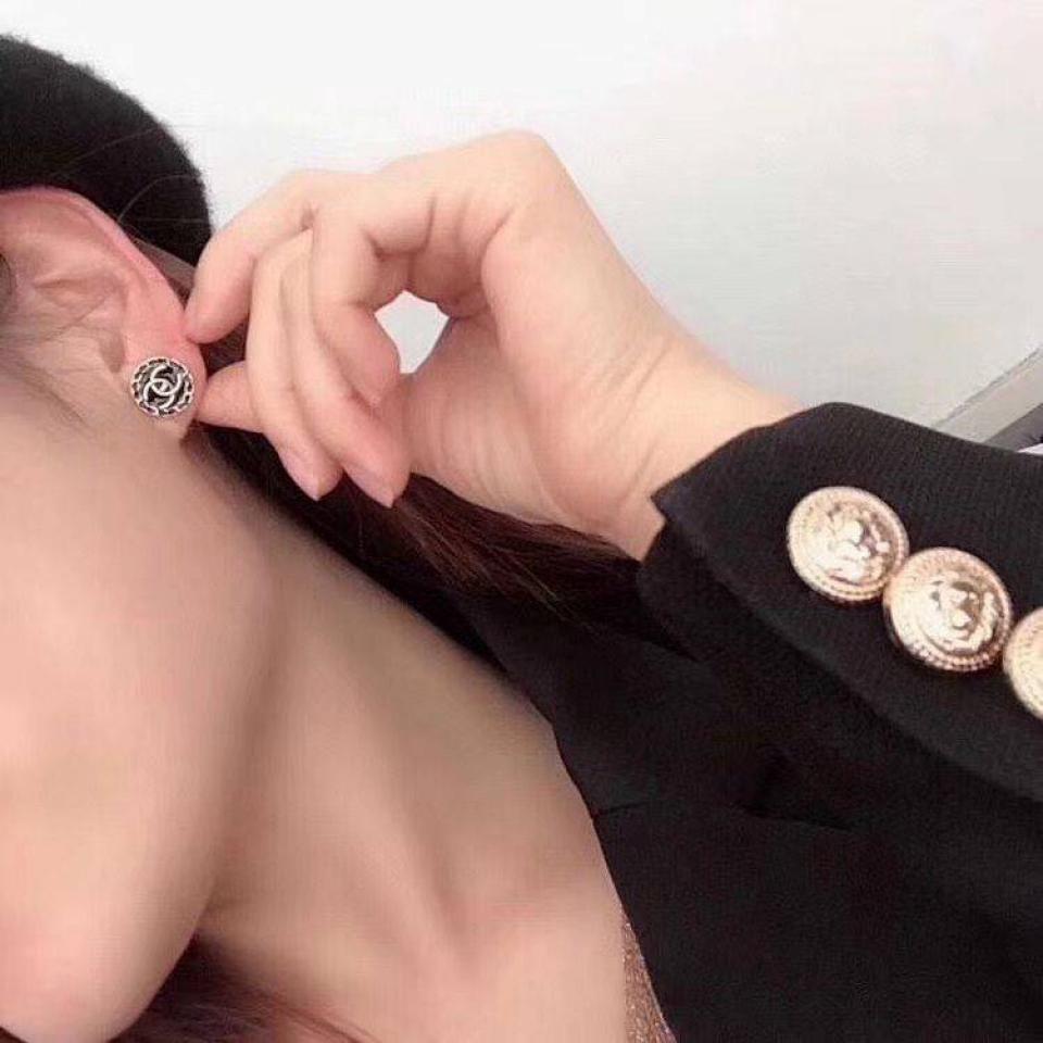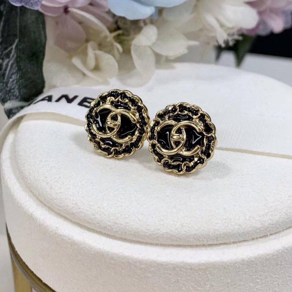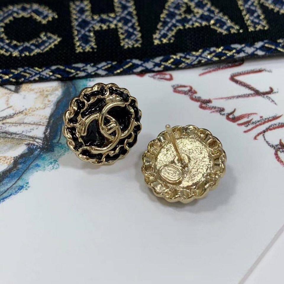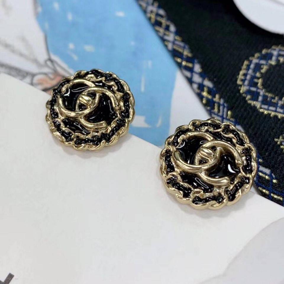 C家珐琅鈕扣黑金耳環