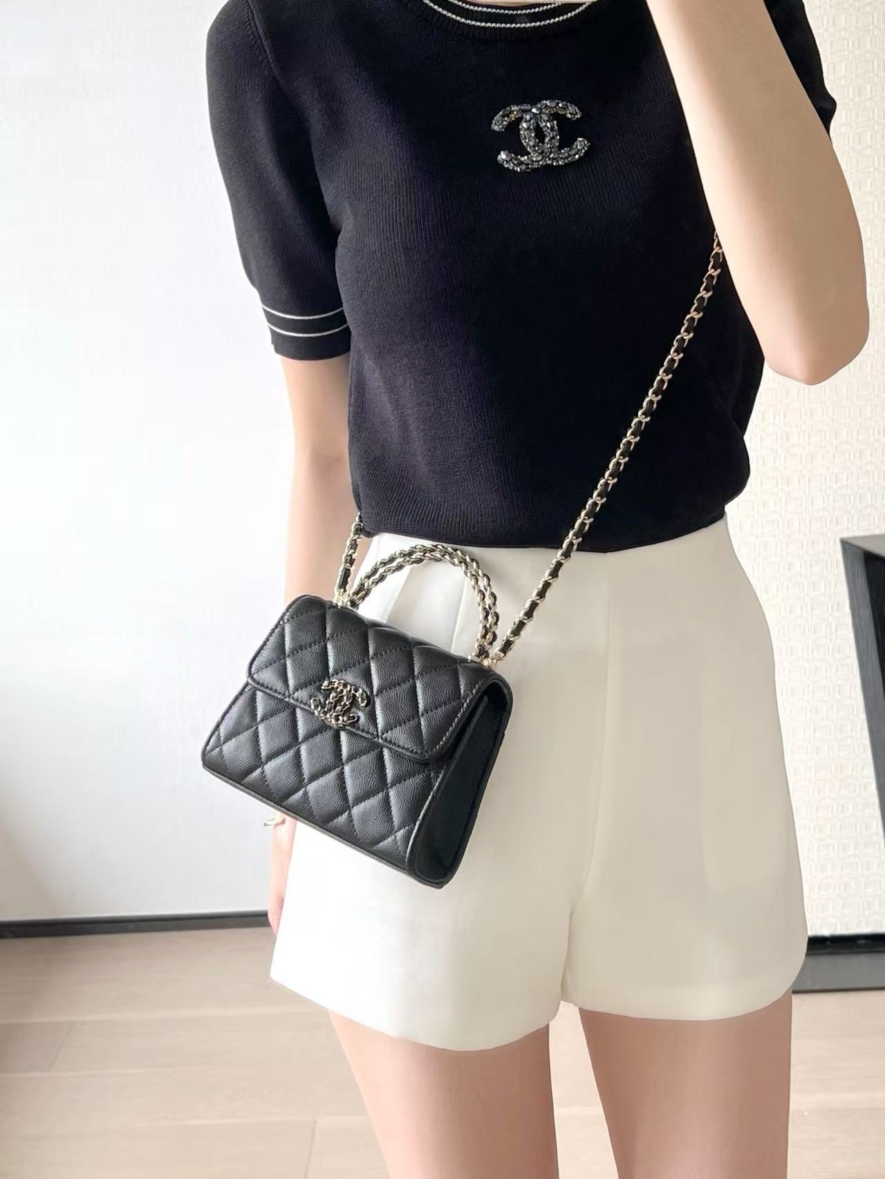 2025春夏 C家 交叉手柄豎款 Kelly 包(黑色),絕對會讓妳的時尚雷達嗶嗶作響!