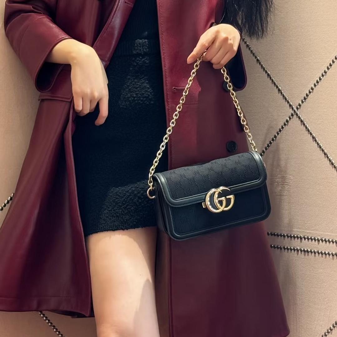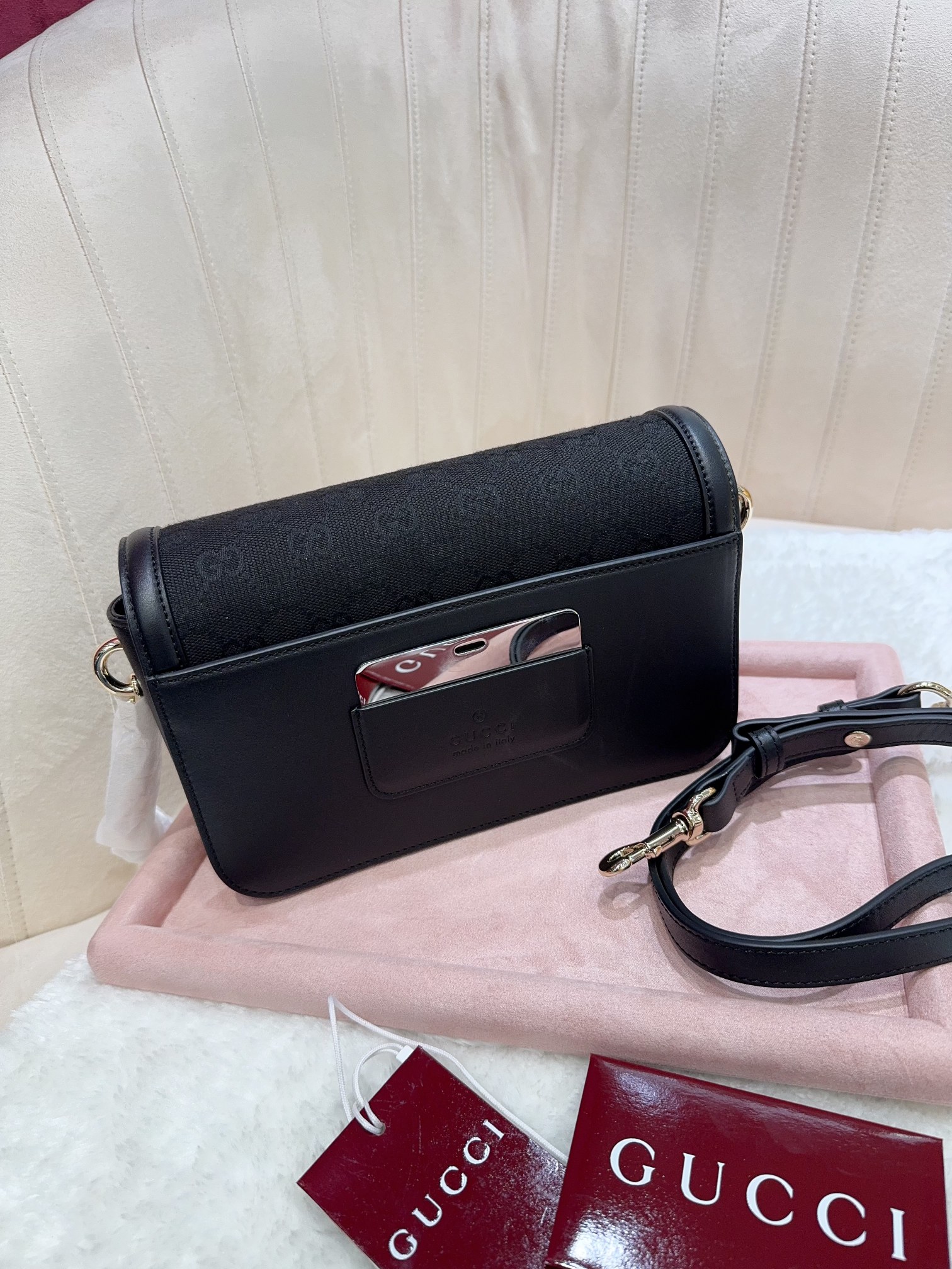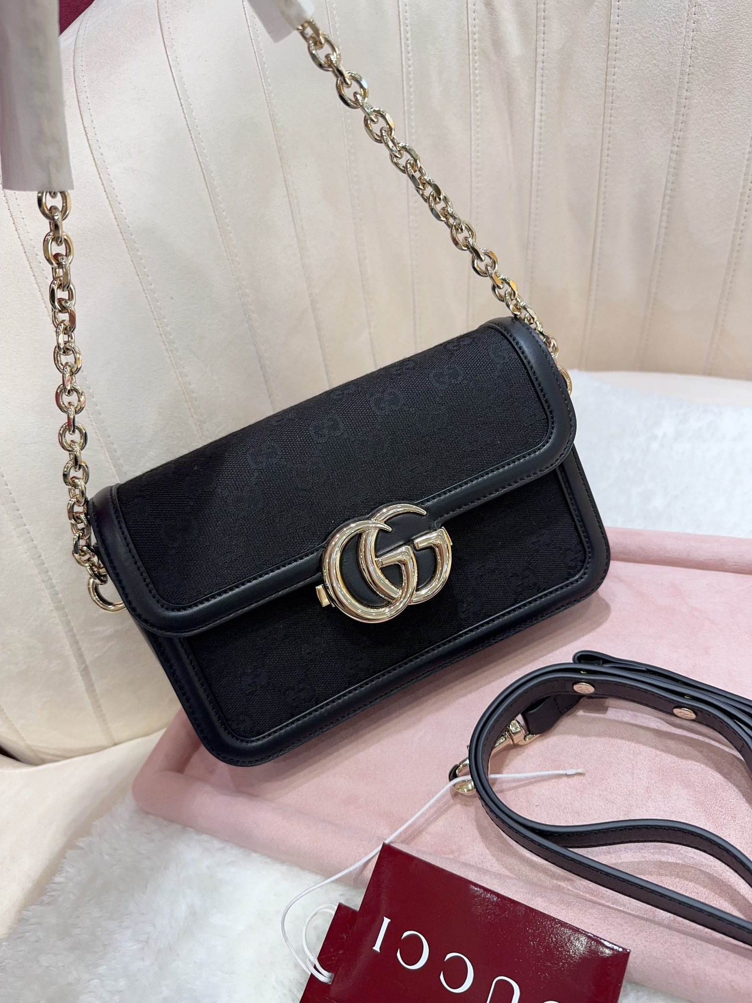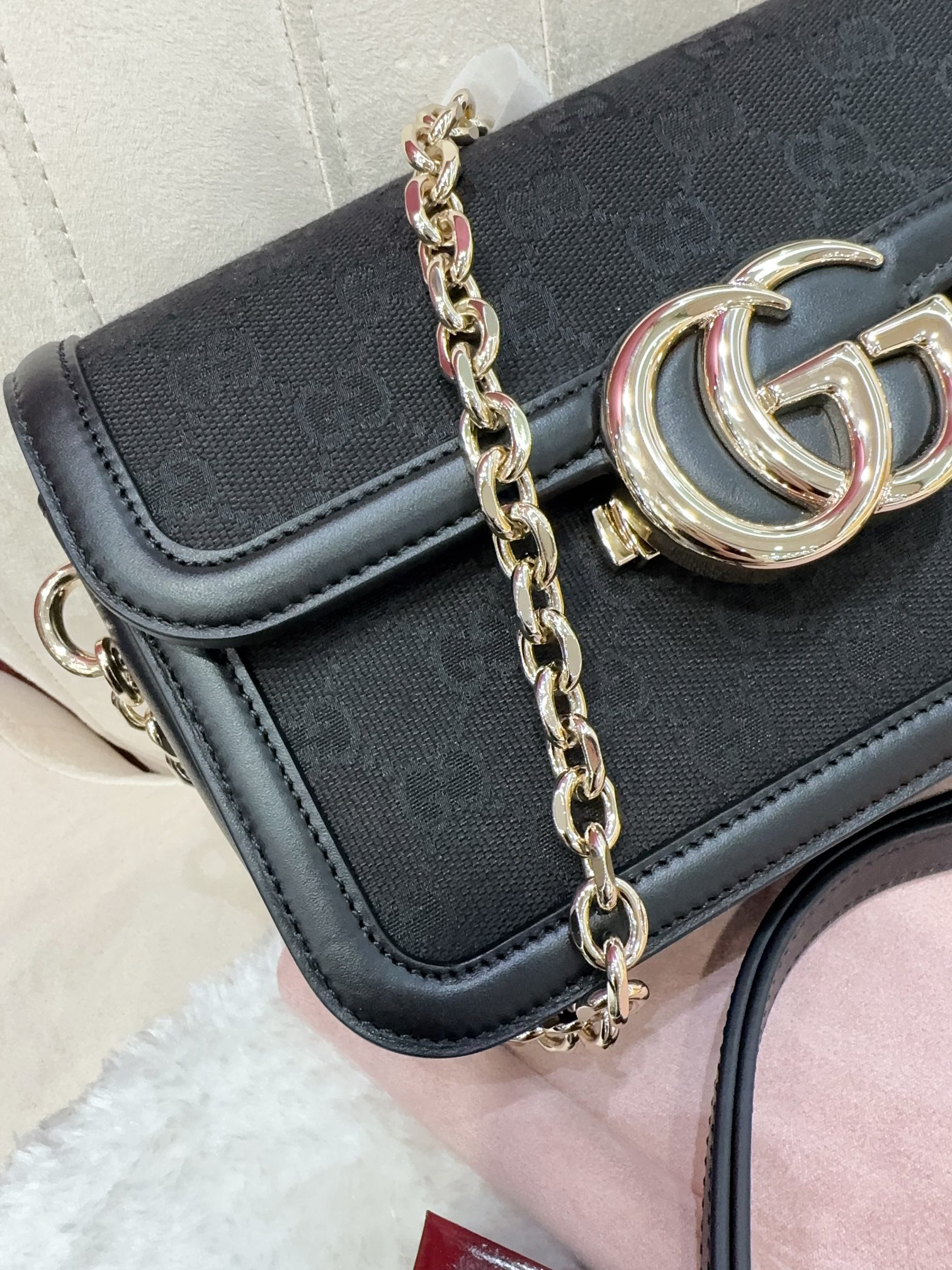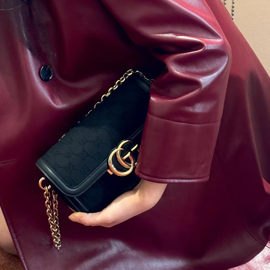 主體材質:輕盈 GG 帆布拼接黑色牛皮,整體質感挺括,耐用又不失高級感。
