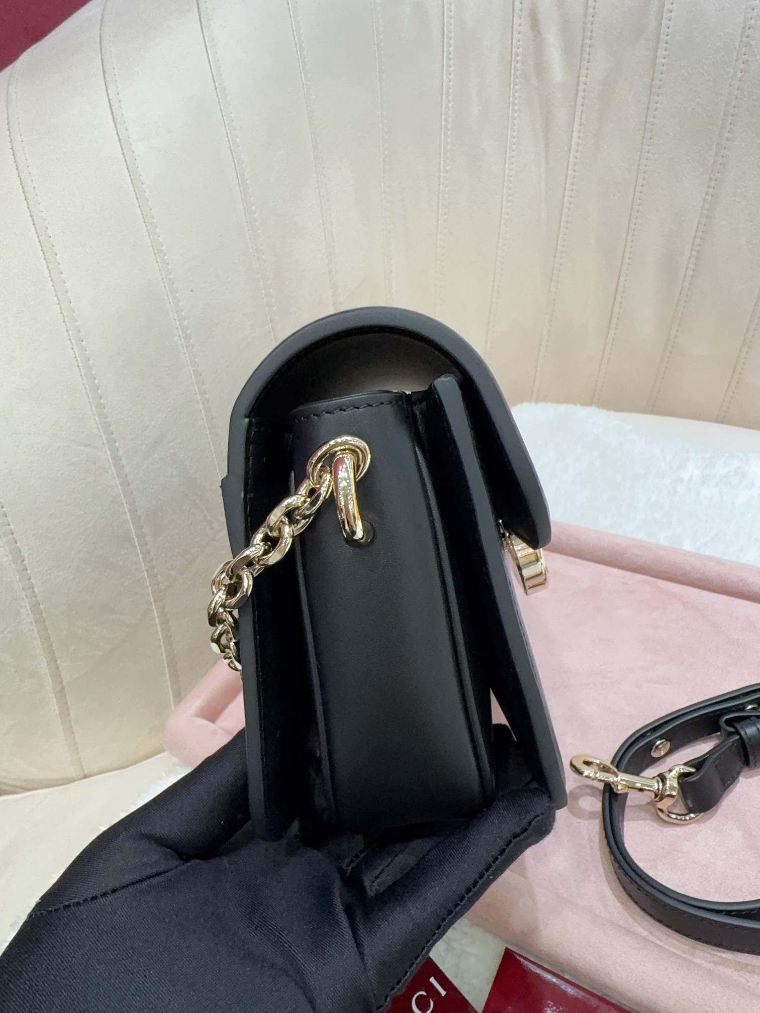 黑色 GG 帆布搭配同色牛皮拼接,視覺上簡約俐落,卻又藏著不俗品味。搭配淺金色五金點綴,增添一絲溫潤光澤感,整體色調耐看又實搭,是那種能夠長久陪伴的包款。