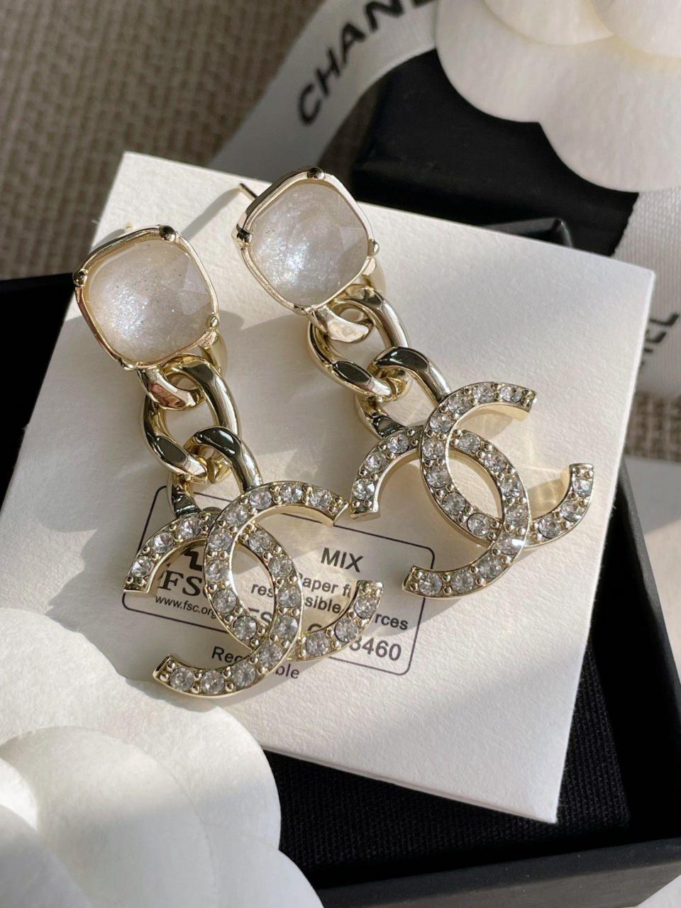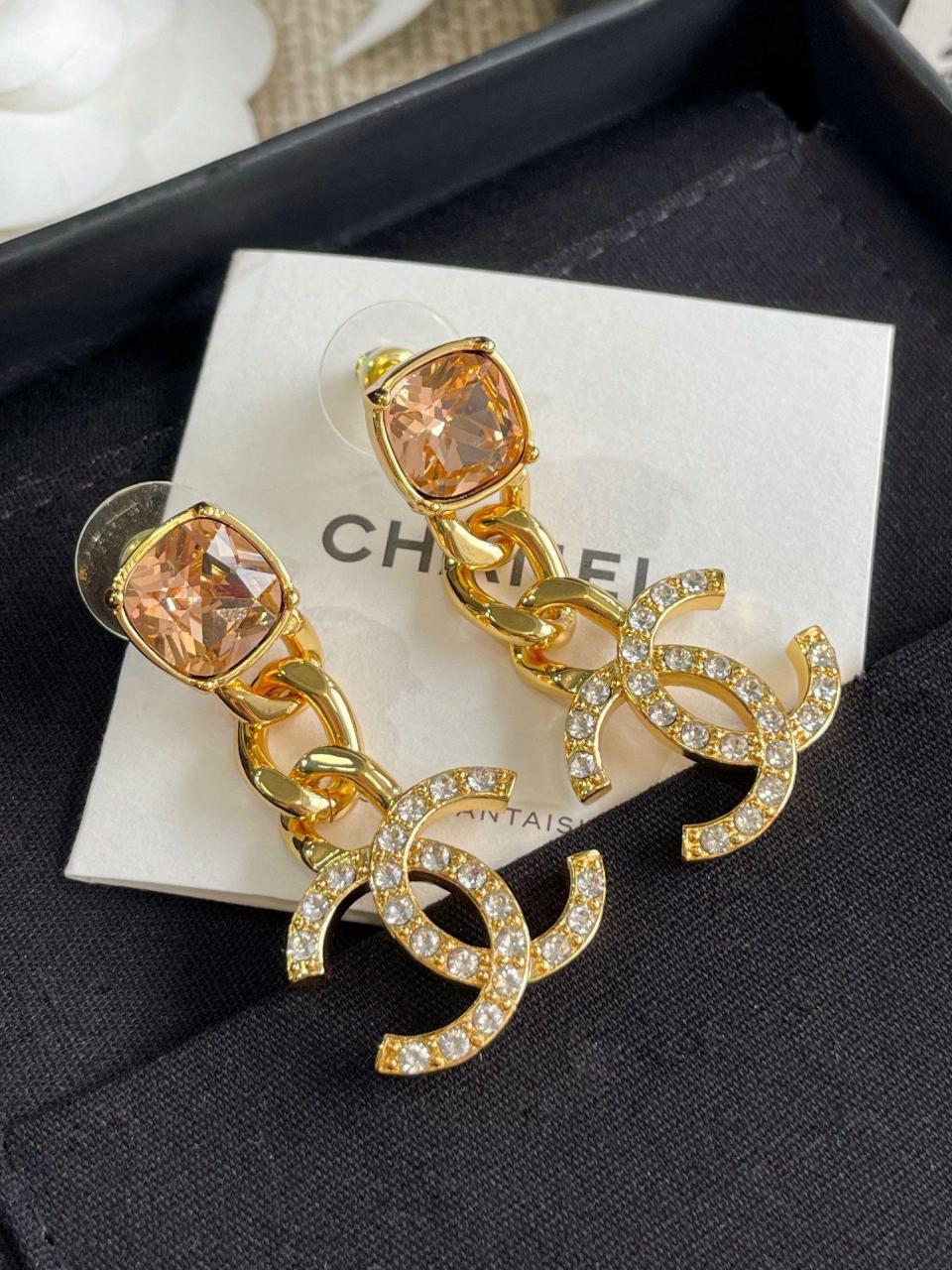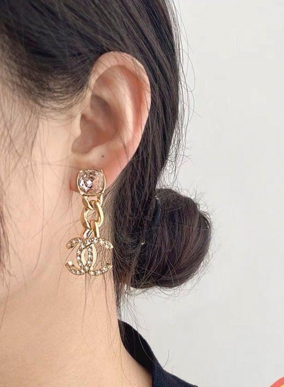 淺金色配特別定制的亮閃閃鑽,金色配茶色鑽,雙c上施華洛水鑽閃爆非常絕美的設計,長度非常好的修飾臉部線條,日常各種場合搭配都適合