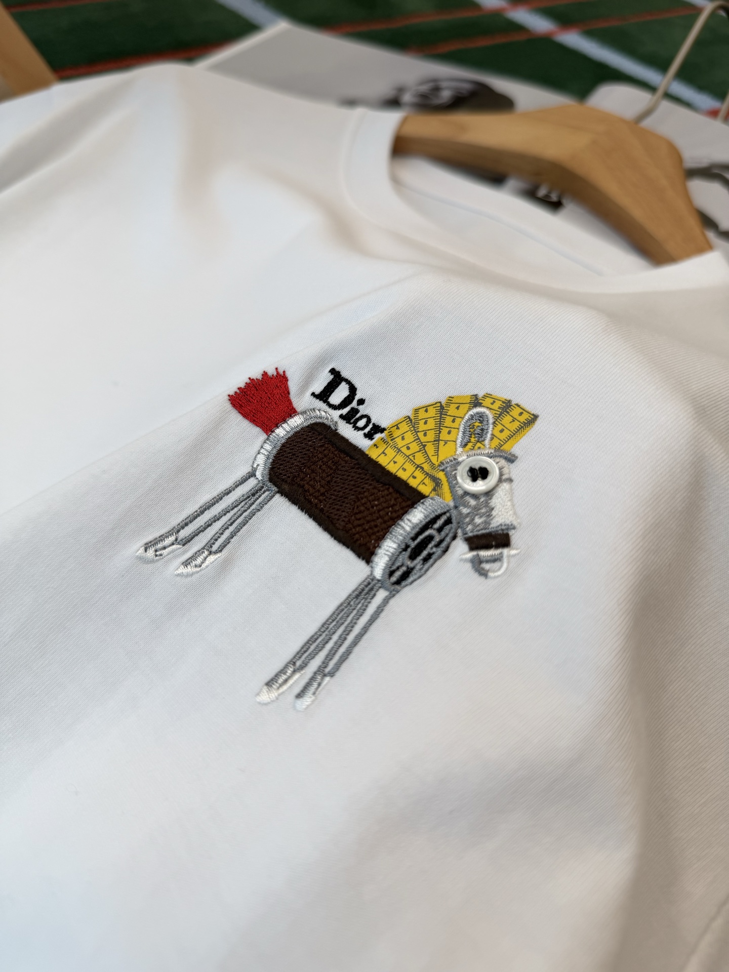 正面結合了精緻小馬刺繡、印花元素與珍珠母貝鈕扣裝飾,層次感非常豐富,但整體又不會過於花俏,反而多了一種低調的貴氣感。