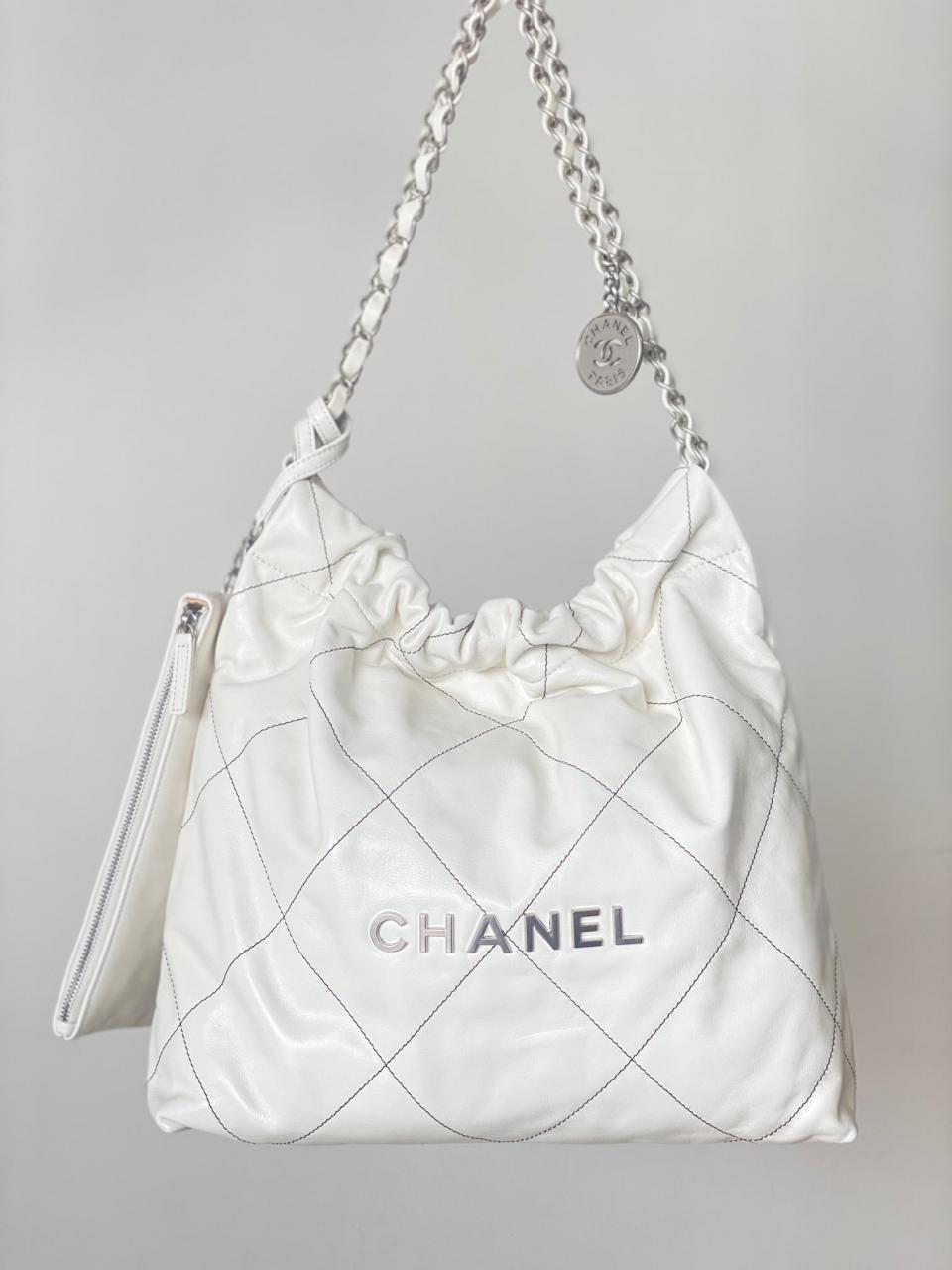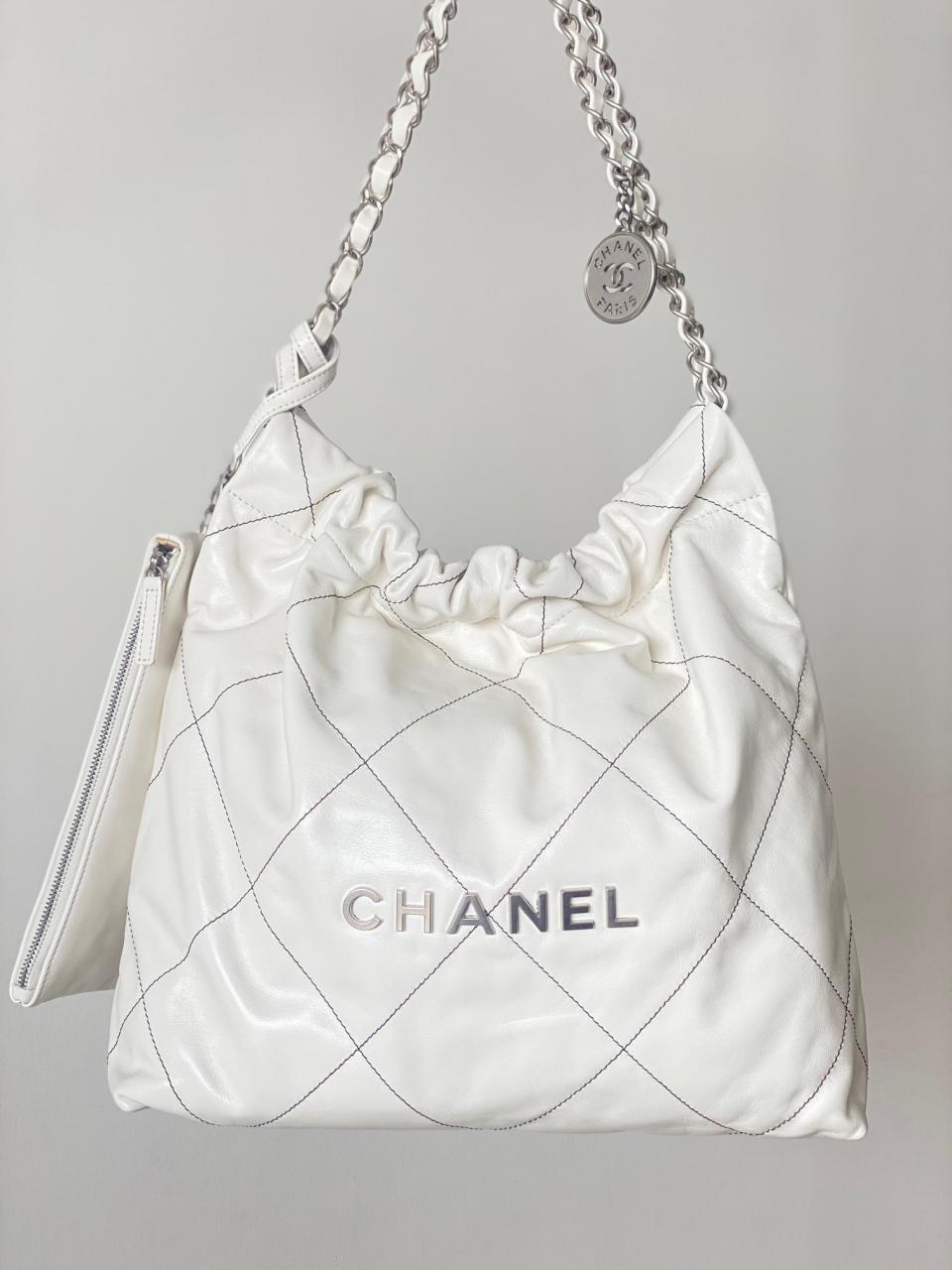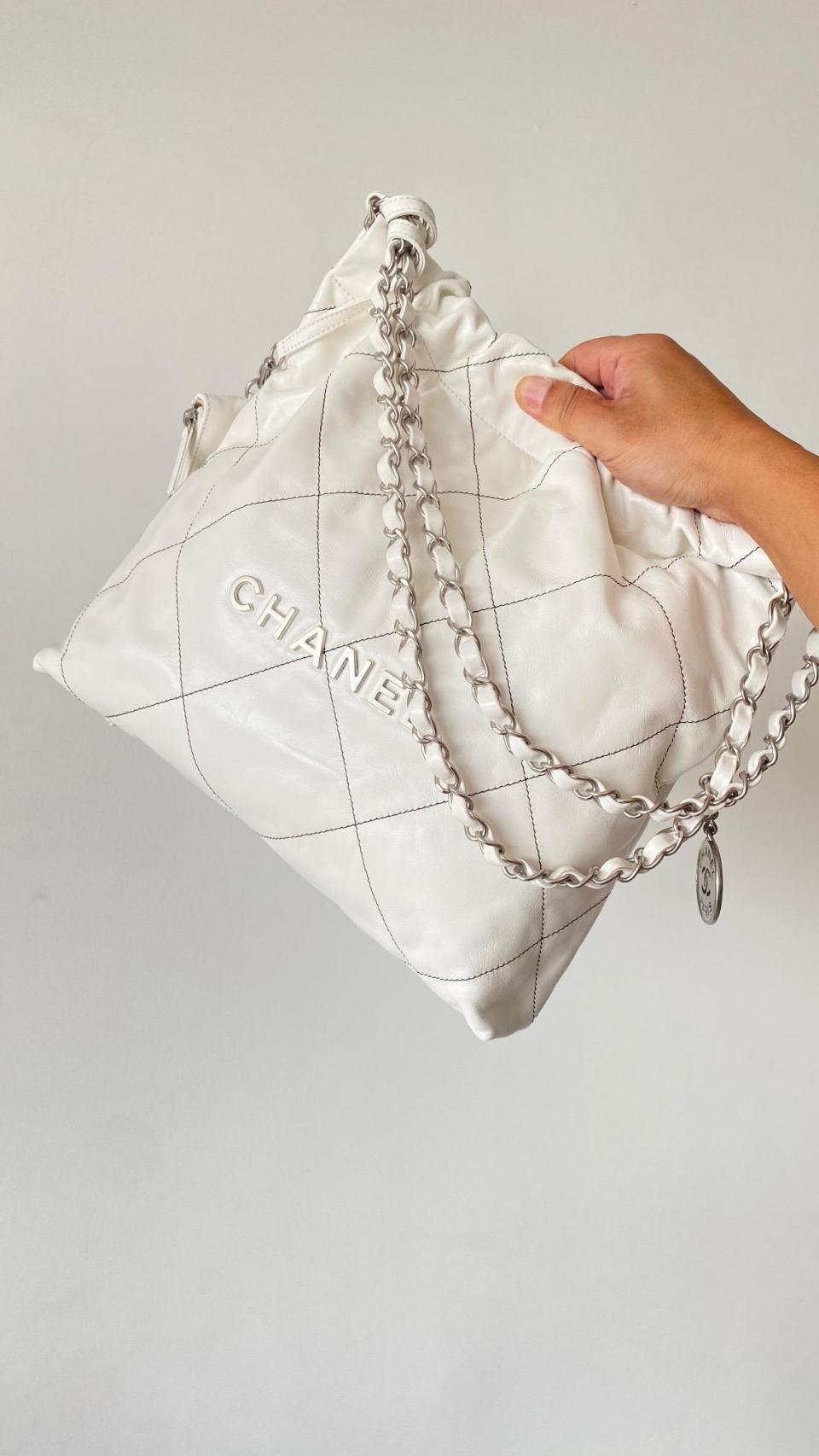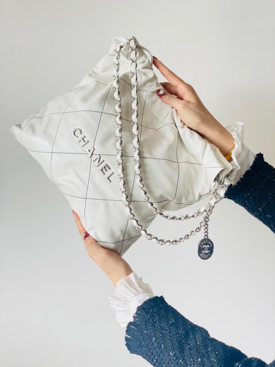 2022秋冬新品 新配色來襲 超級火爆款 23c bag字母白色黑線單肩購物袋 (小號)