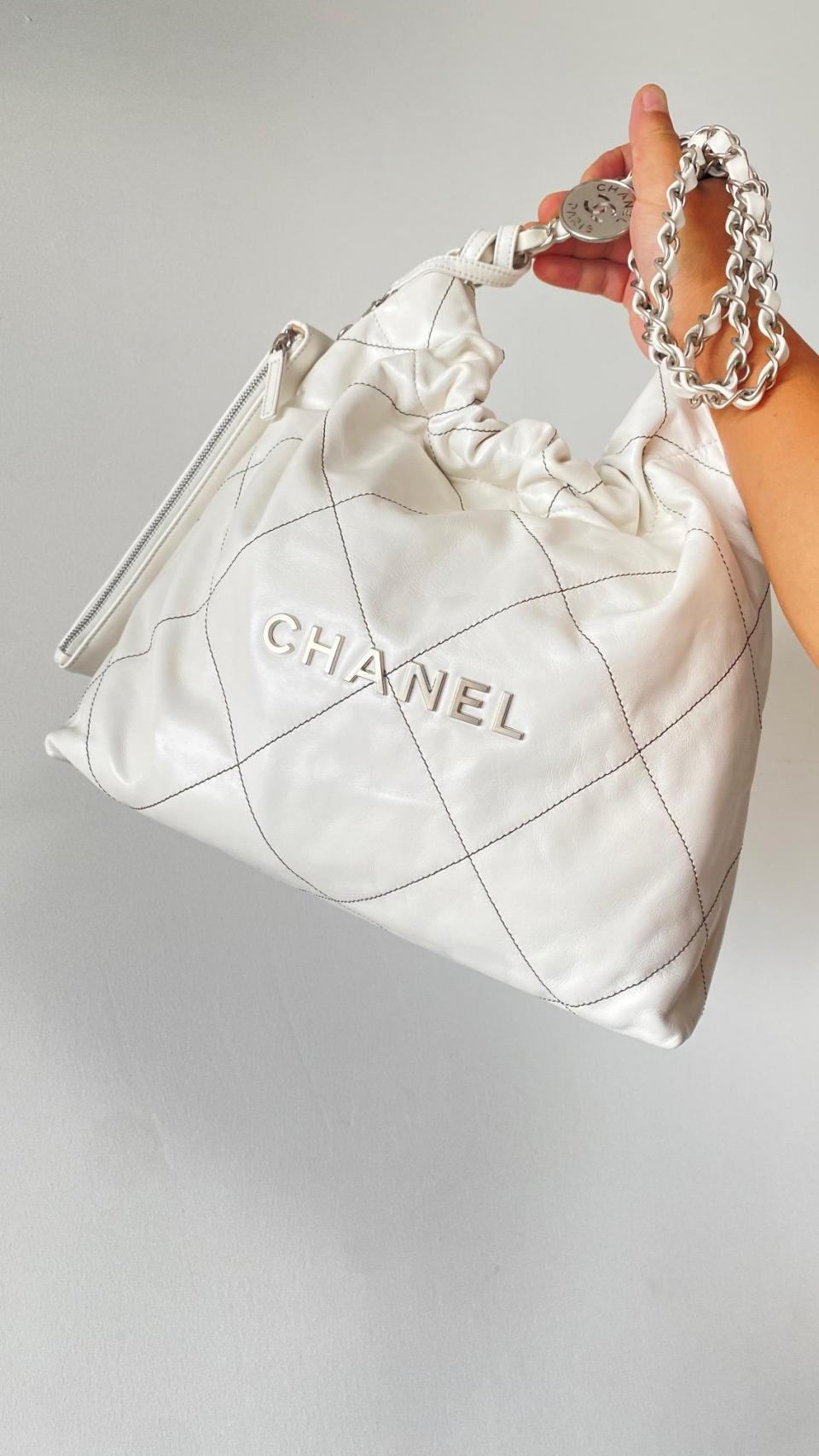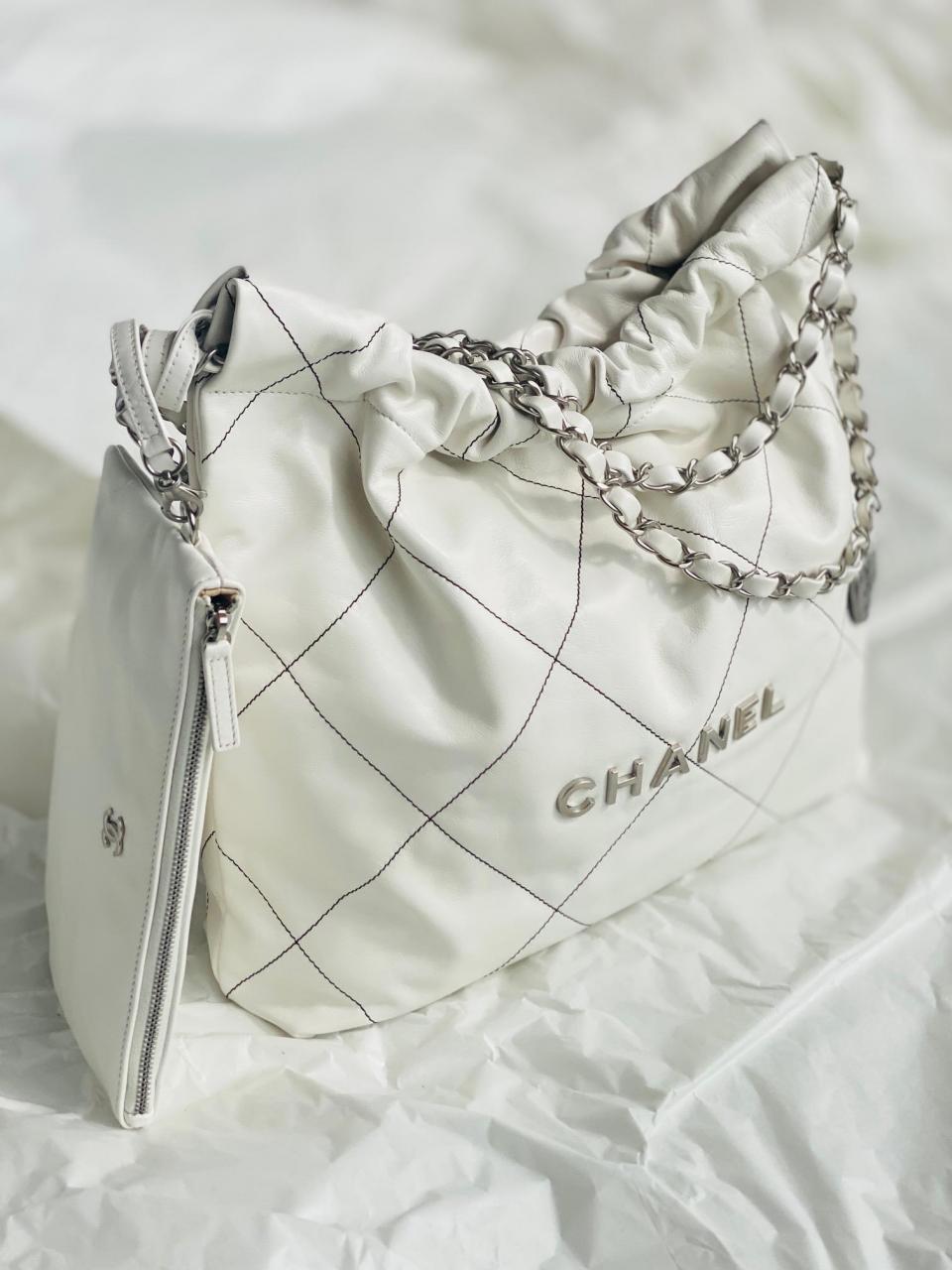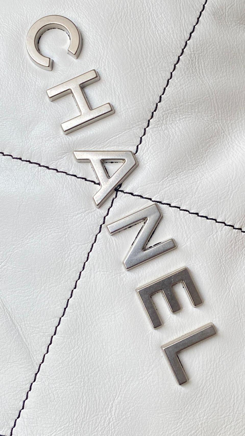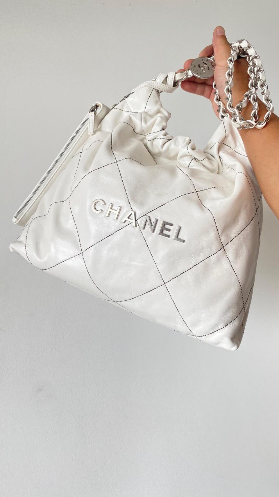 2022秋冬新品 新配色來襲 超級火爆款 23c bag字母白色黑線單肩購物袋 (小號)