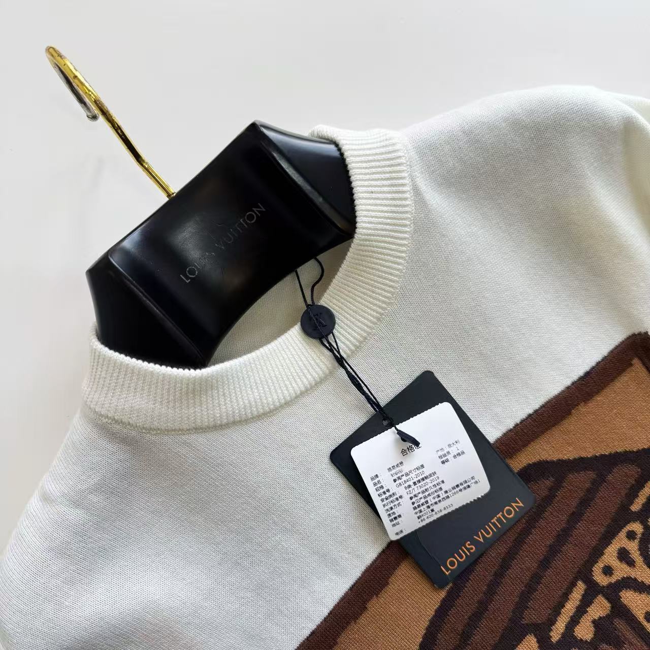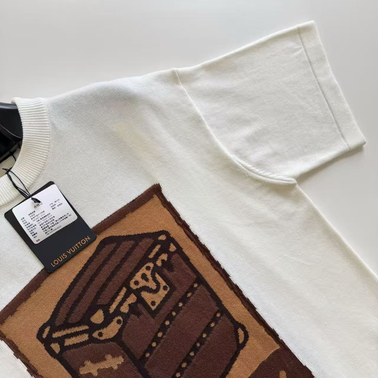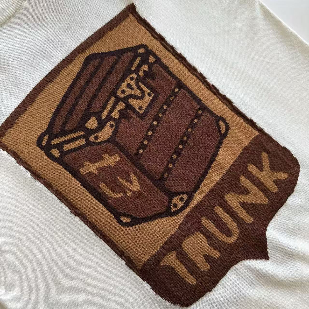 這件毛織 T 恤的重點在於圖案的精準度和工藝的複雜程度: