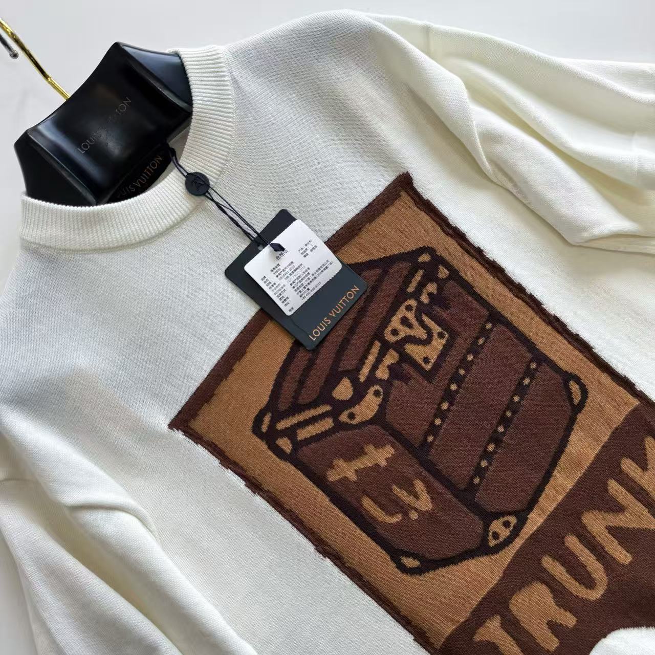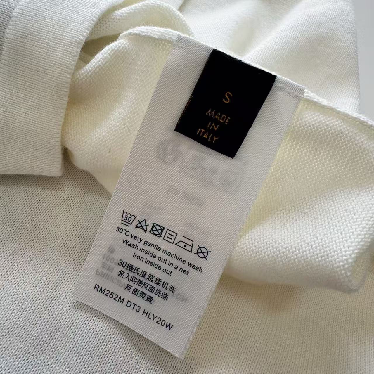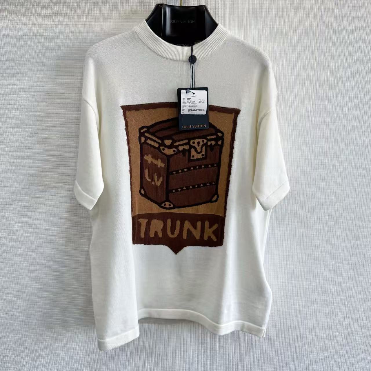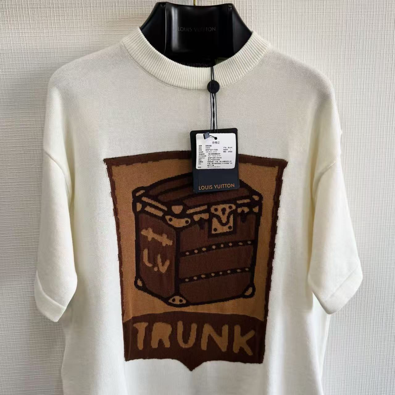 這件毛織 T 恤的重點在於圖案的精準度和工藝的複雜程度: