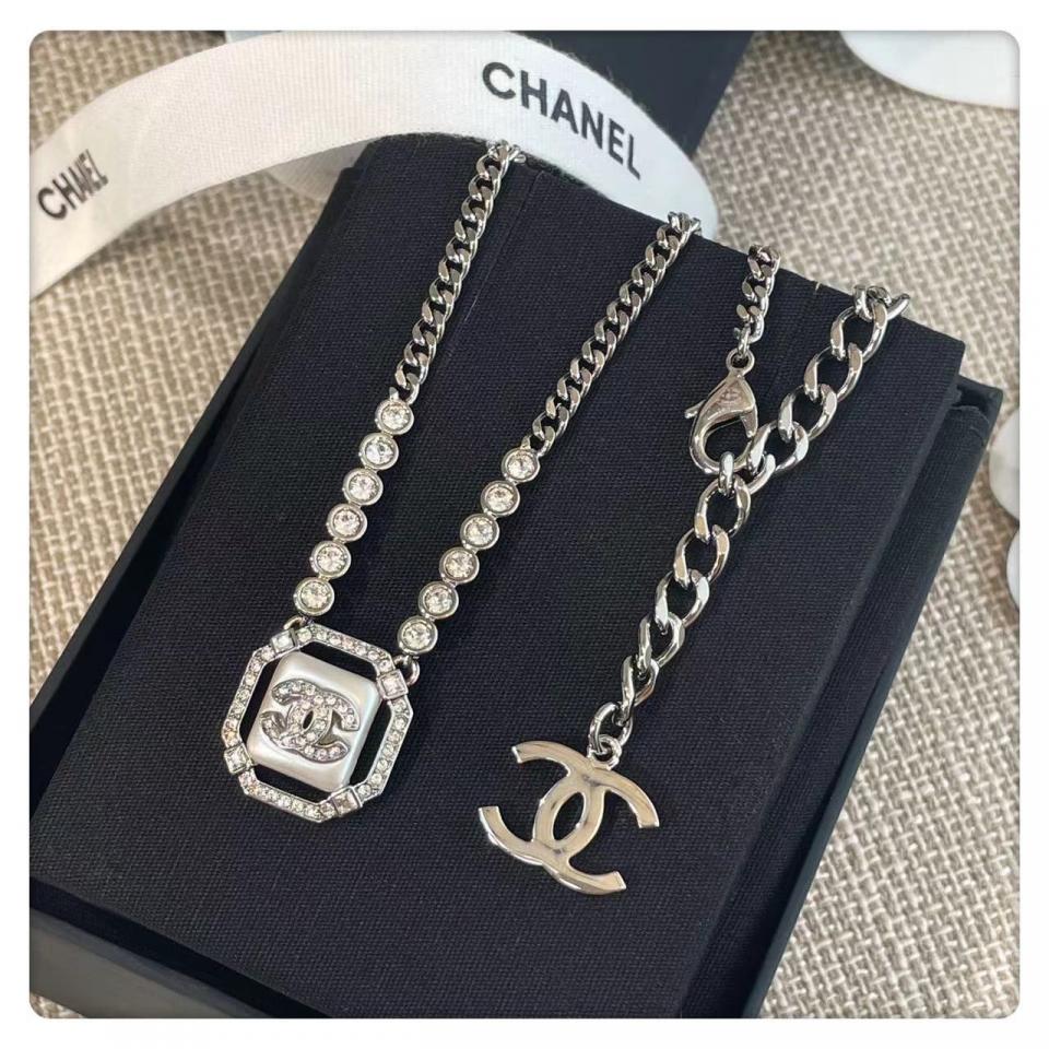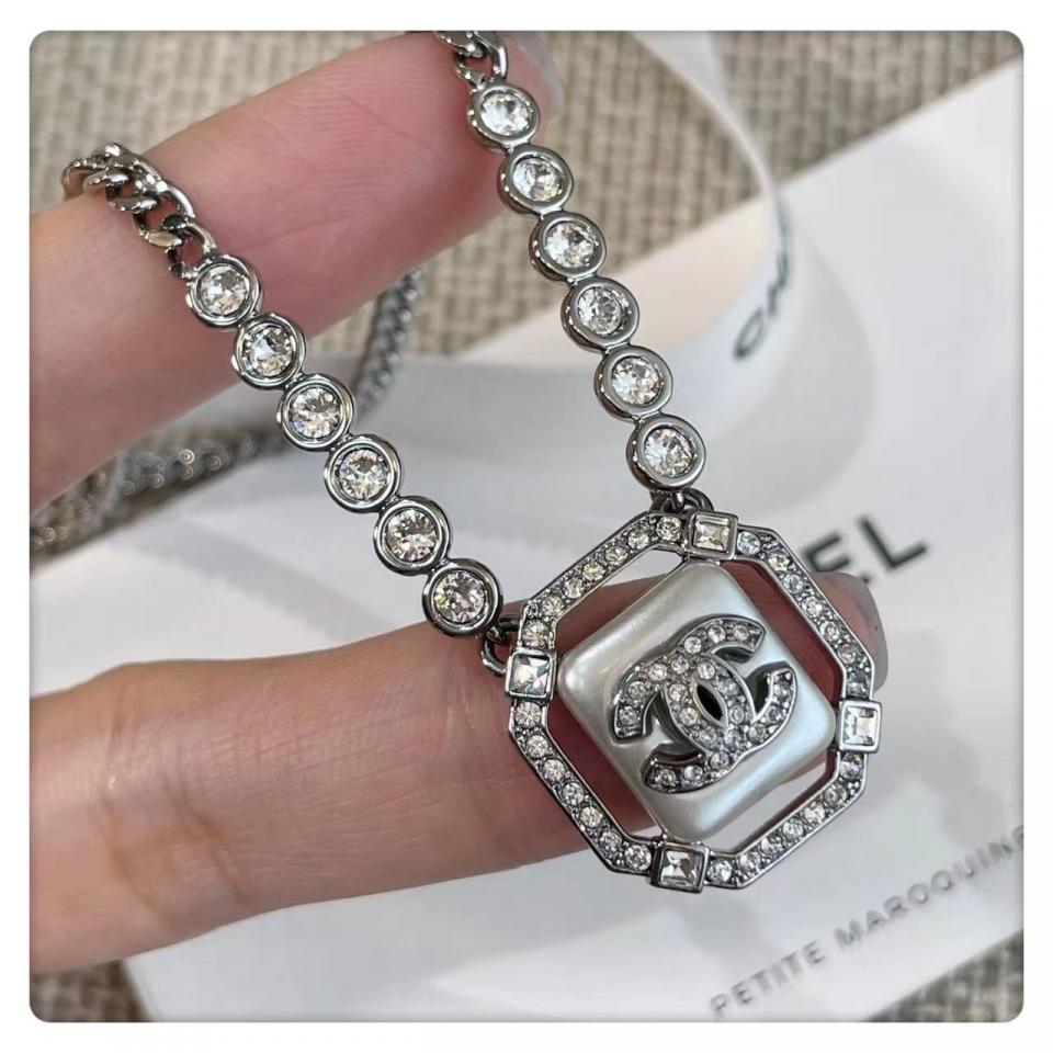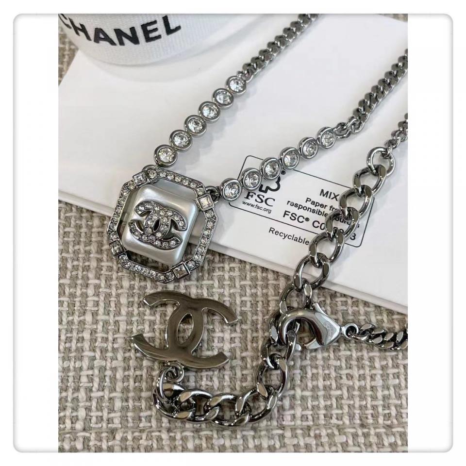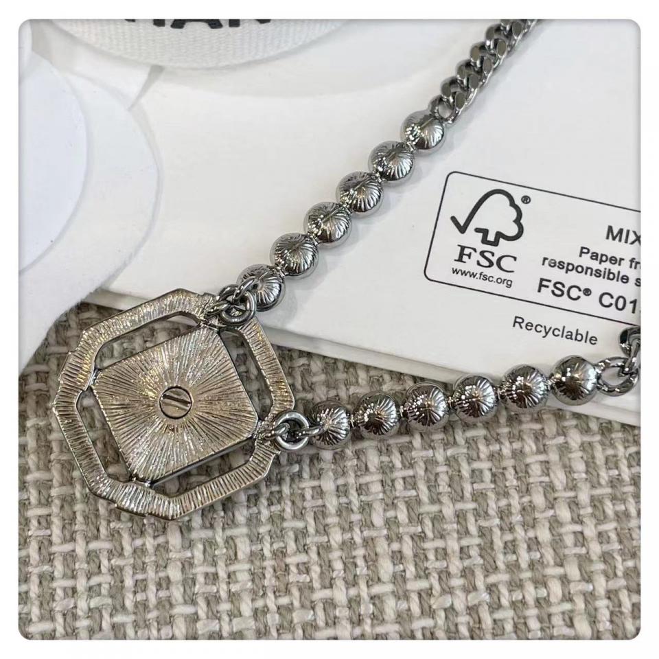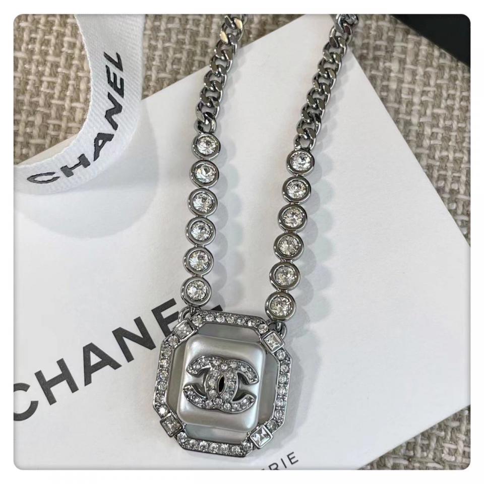 灰銀色五金電鍍不是銀色的,也不是槍黑色,而是非常特別的貴金屬黑釕電鍍!復古又摩登的大小姐風!邊緣施華洛水鑽+四顆方鑽,中間特定方形珍珠,上邊的雙C是坐落在珍珠裡邊的,所以得開多一個珍珠模具出來的珍珠配件,在把雙C粘在珍珠上!背面五金全部純手工手繪拉絲出來的,做工非常細膩精緻!鏈條特別定制,尾鏈長短可調節!