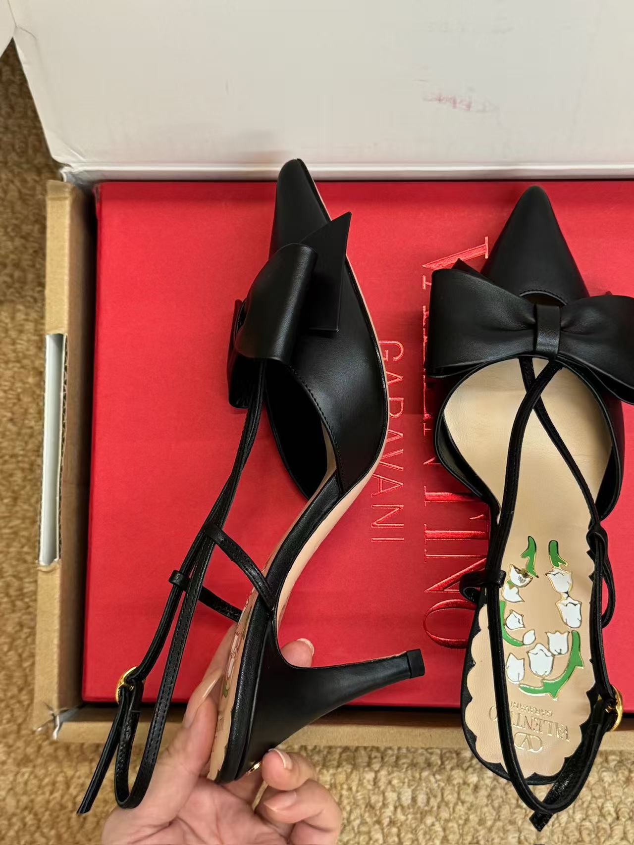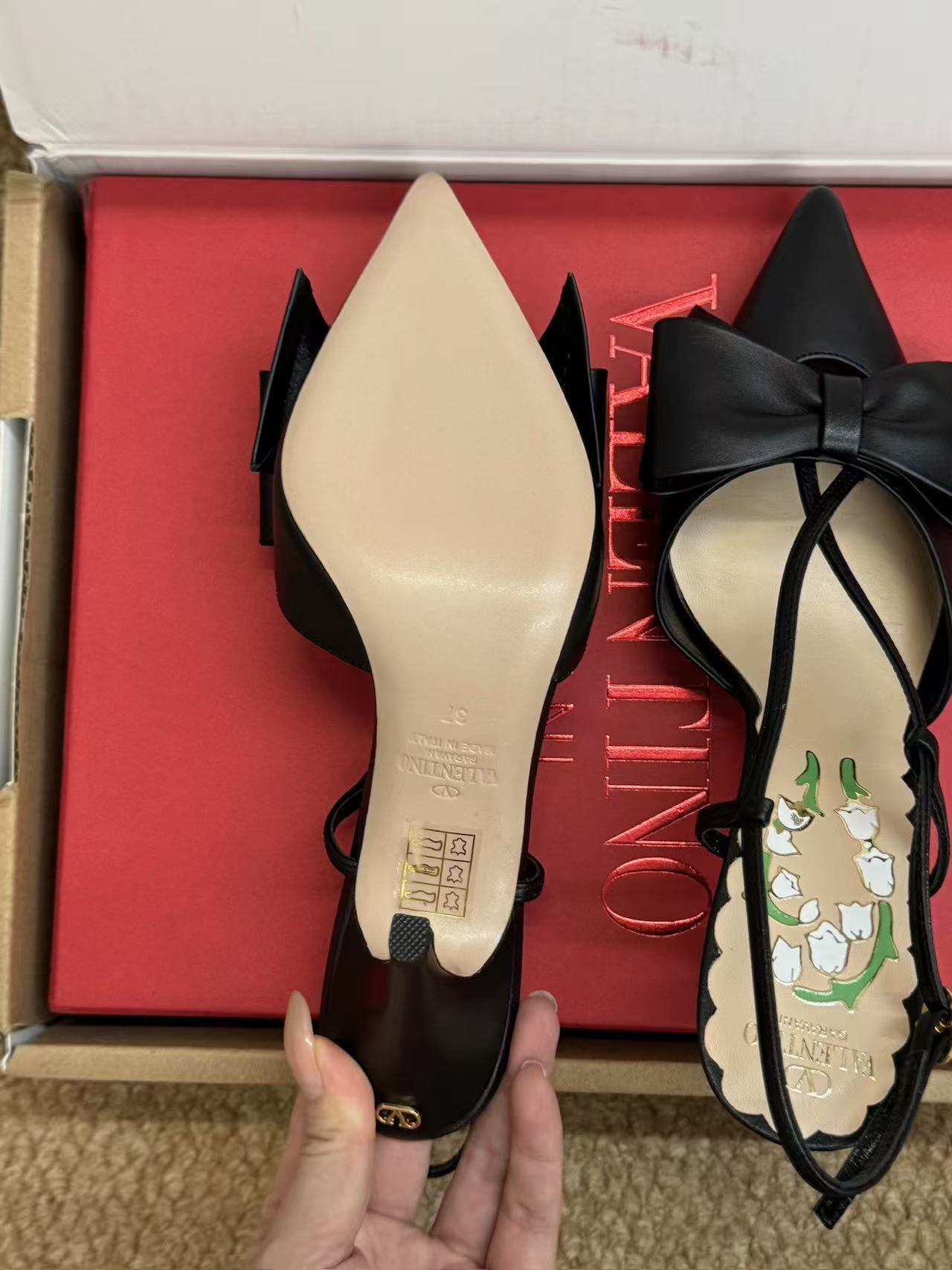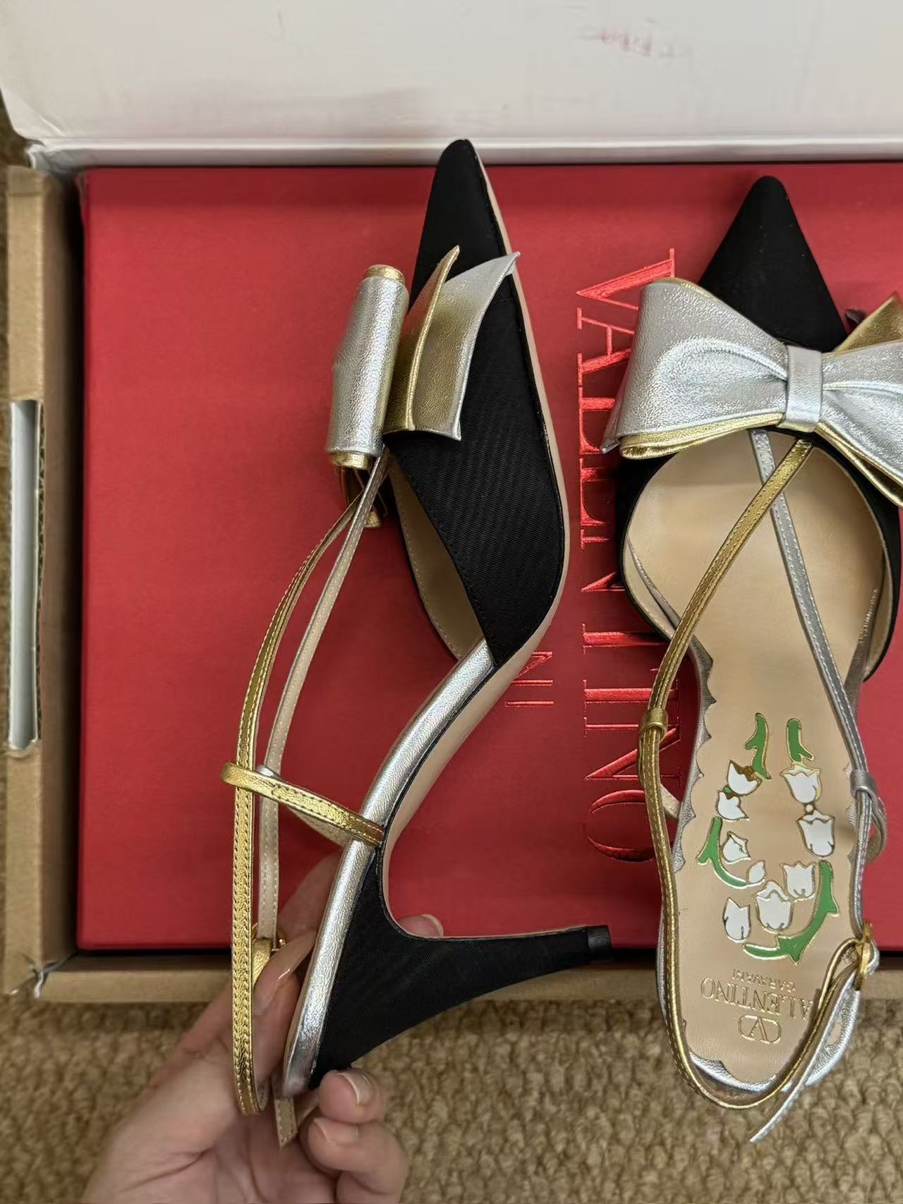 V家 尖頭蝴蝶結鈴蘭高跟涼鞋