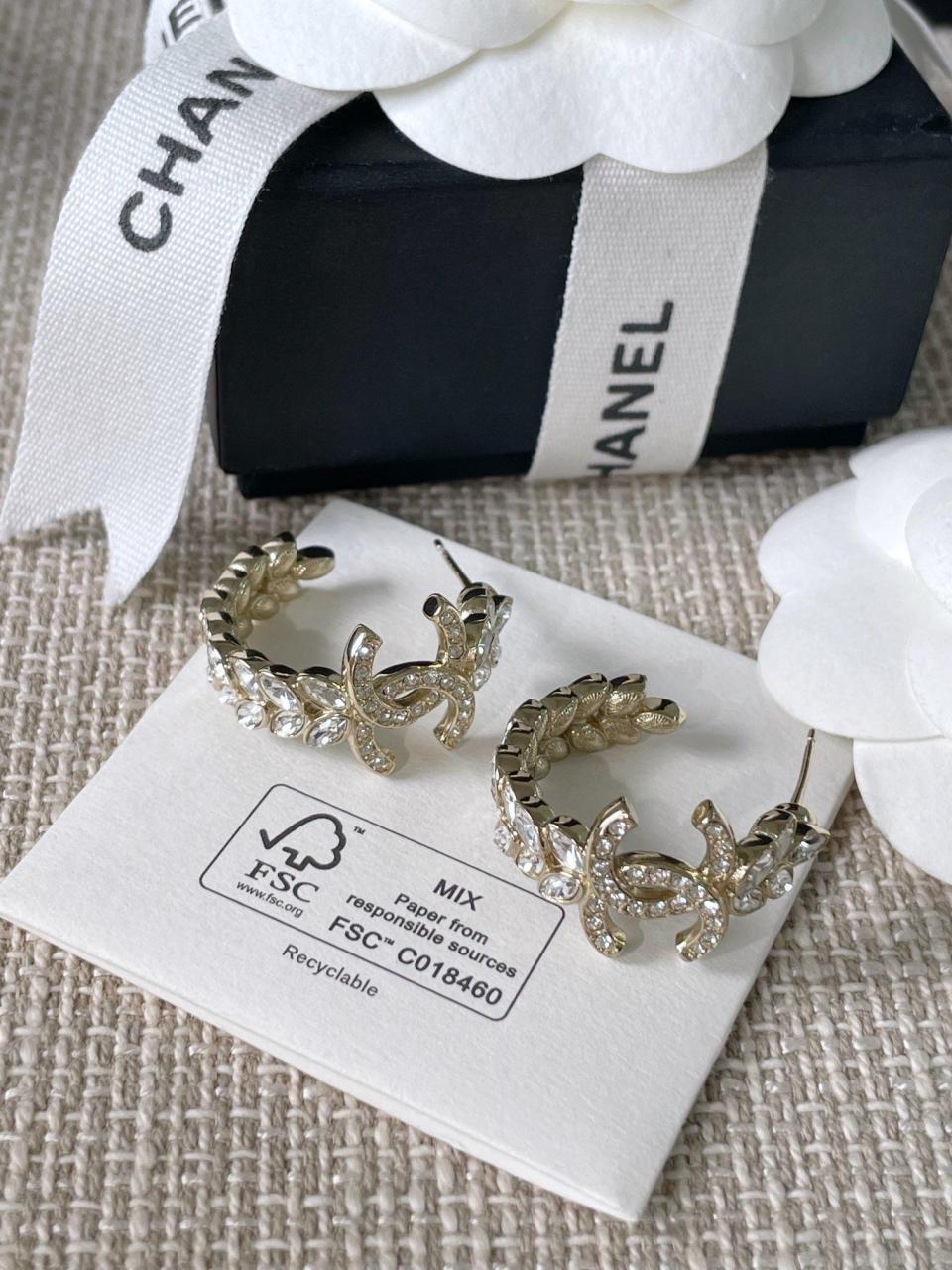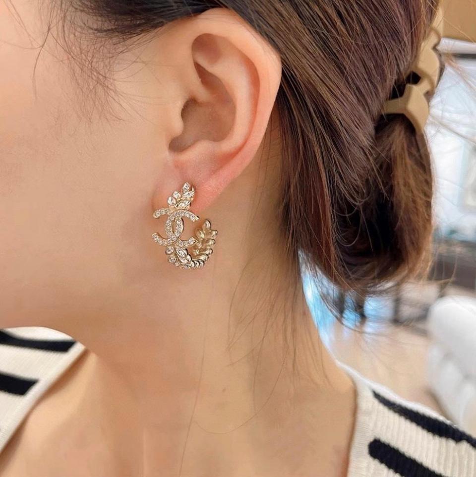 2023春夏 C家淡金色麥穗彎勾滿鑽耳環